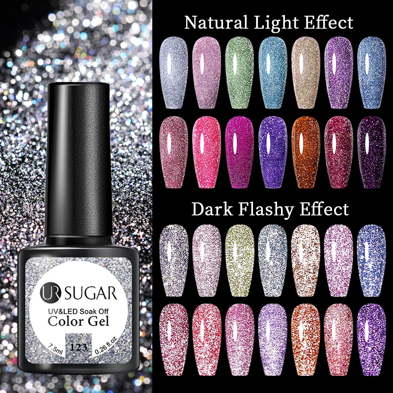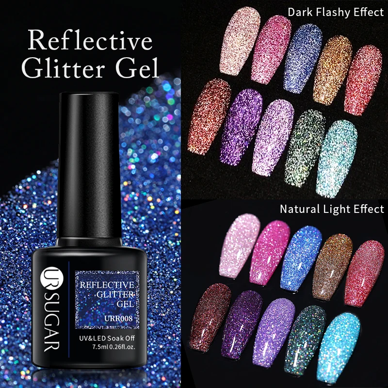 1 бутылка 7,5 мл UR SUGAR светоотражающий Блестящий Цвет гель