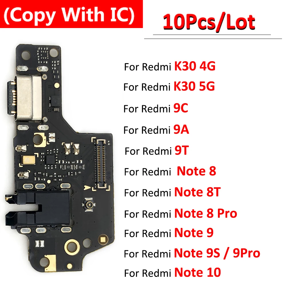 10 шт., для Xiaomi Redmi K30 4G 5G Note 8 9 Pro 8T 9S 10 9A 9C 9T USB микро зарядное устройство порт для зарядки док-станция Соединительная плата гибкий кабель