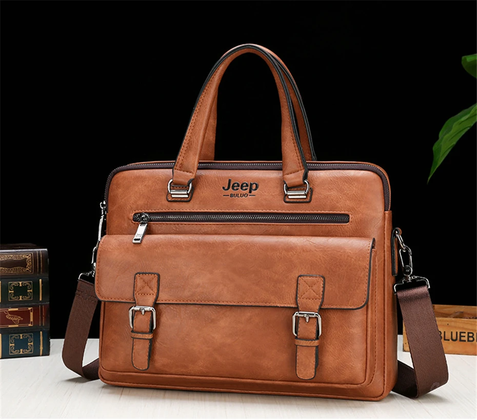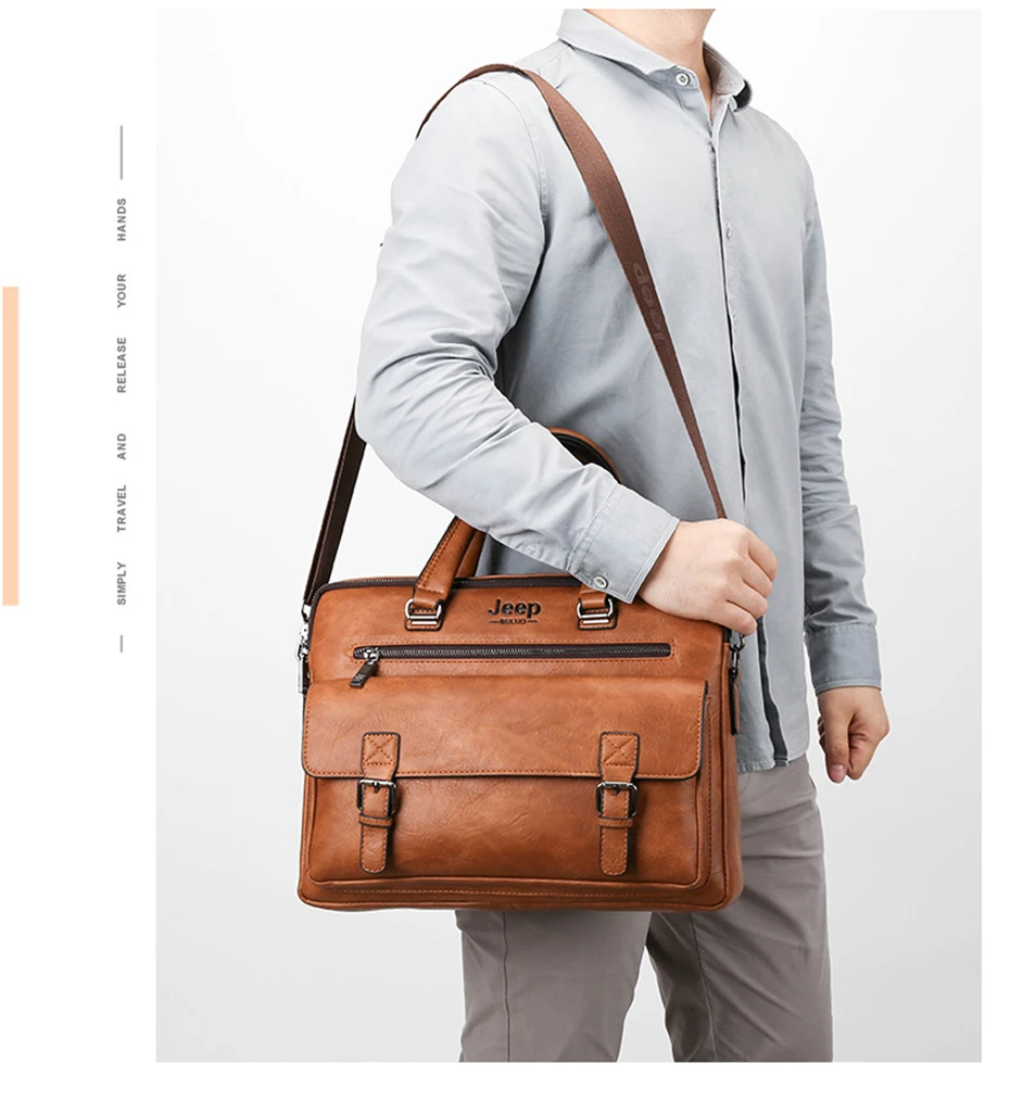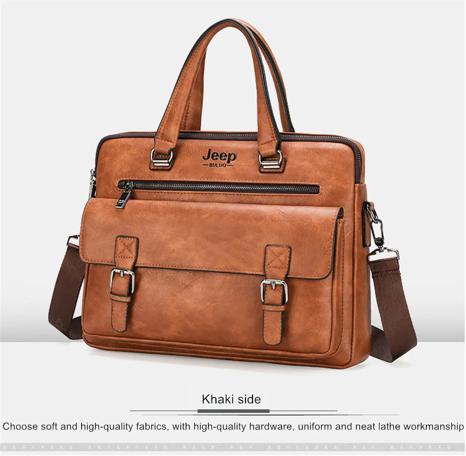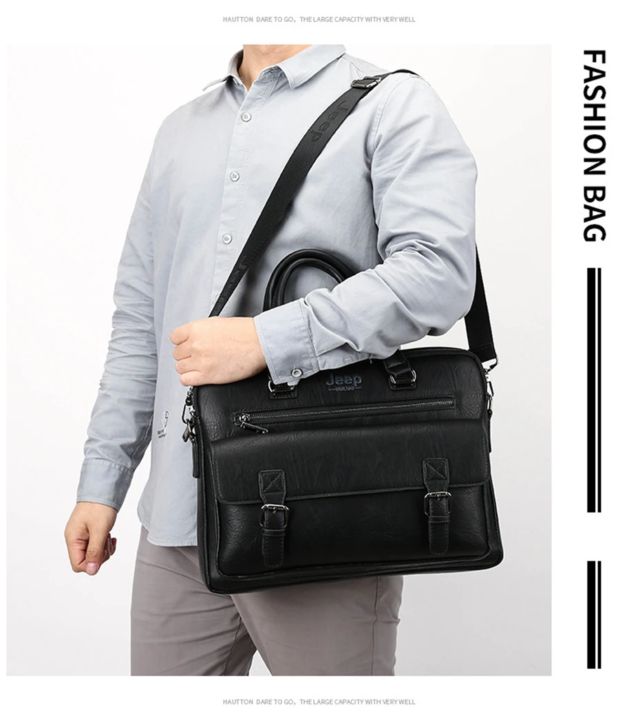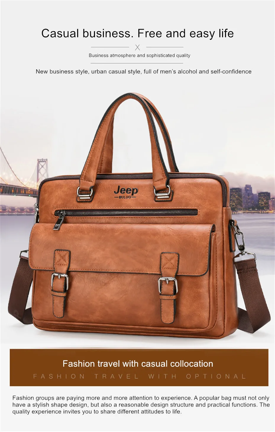 Портфель JEEP BULUO мужской для ноутбука 14 дюймов, сумка на плечо из высококачественной кожи, модная офисная черная сумка