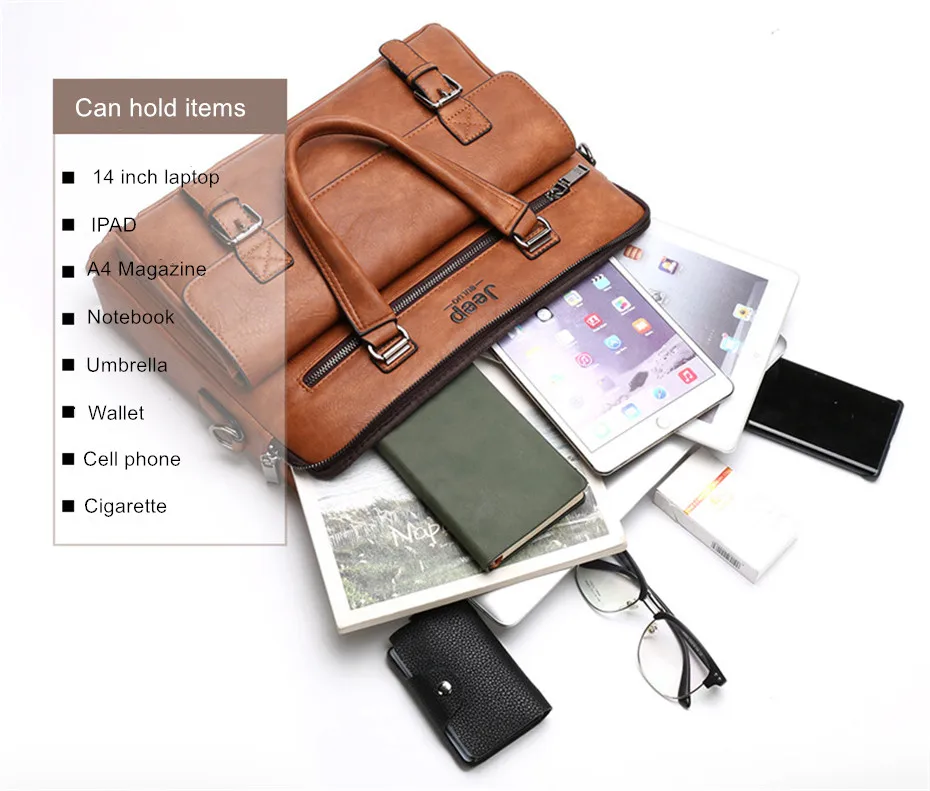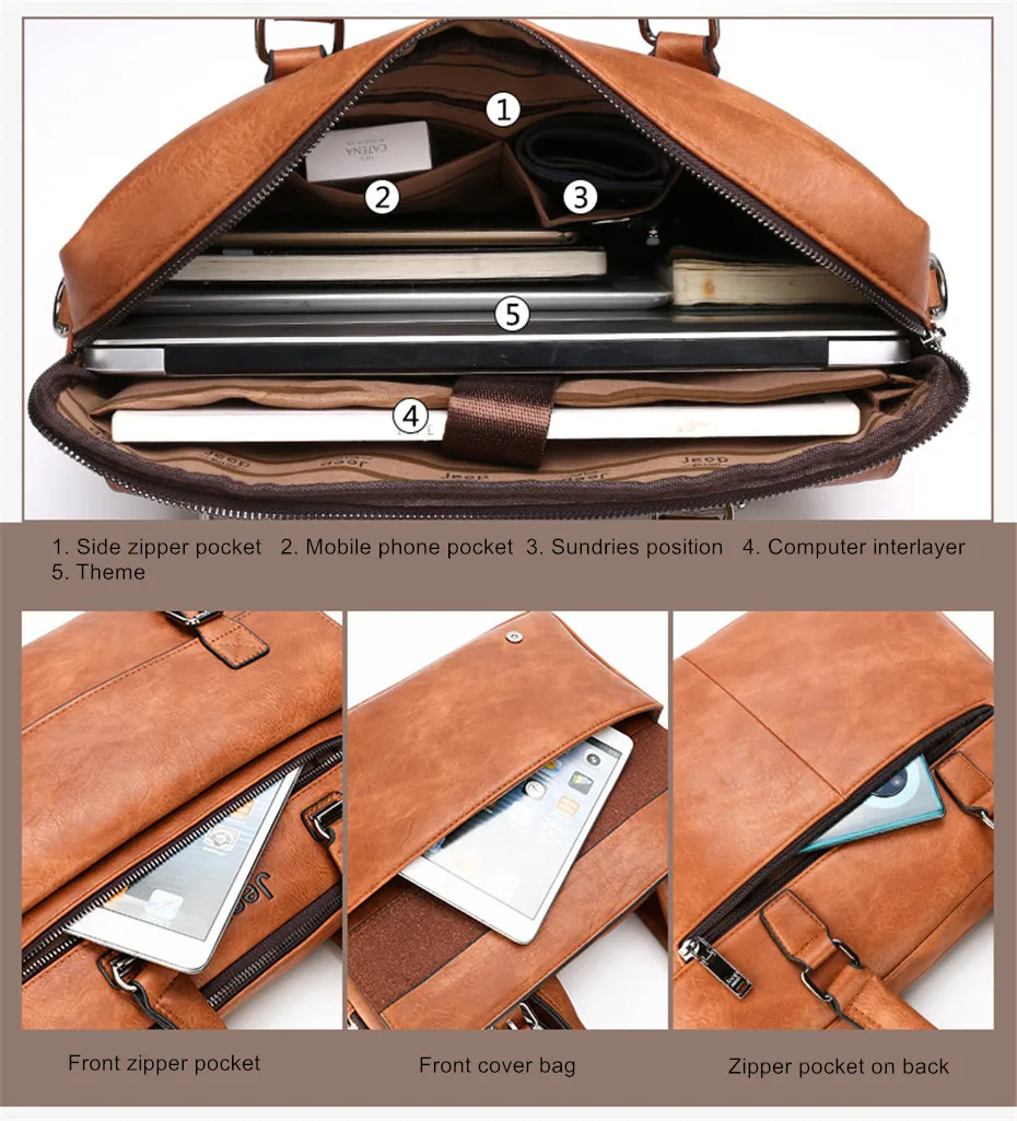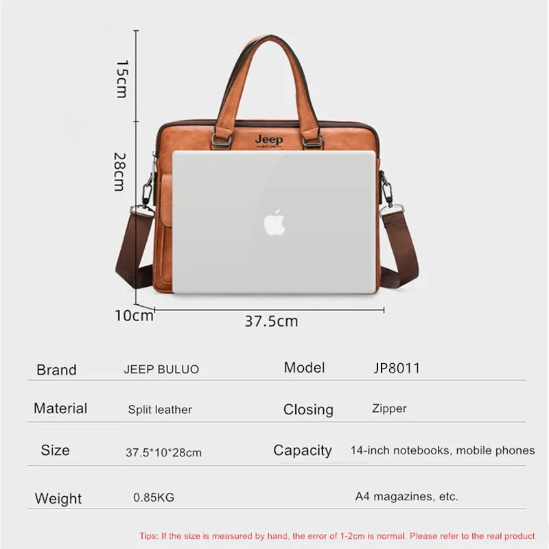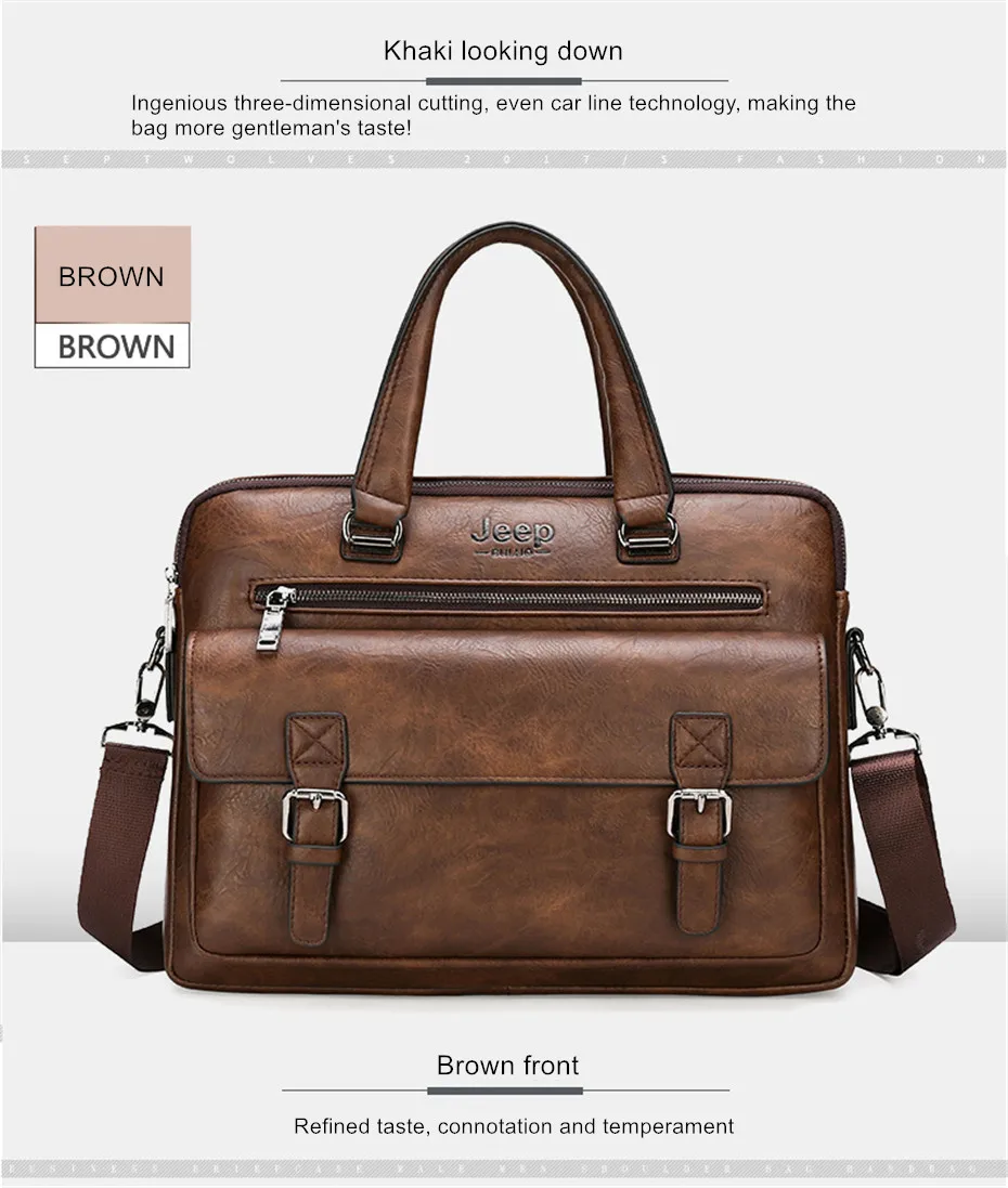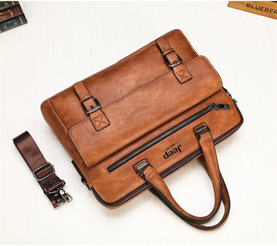 Портфель JEEP BULUO мужской для ноутбука 14 дюймов, сумка на плечо из высококачественной кожи, модная офисная черная сумка