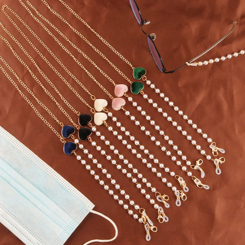 Цепочка цепочка для очков женская, модная подвесная цепочка с жемчугом и бусинами, со стразами, аксессуар для солнцезащитных очков, шнурок со стеклянными украшениями