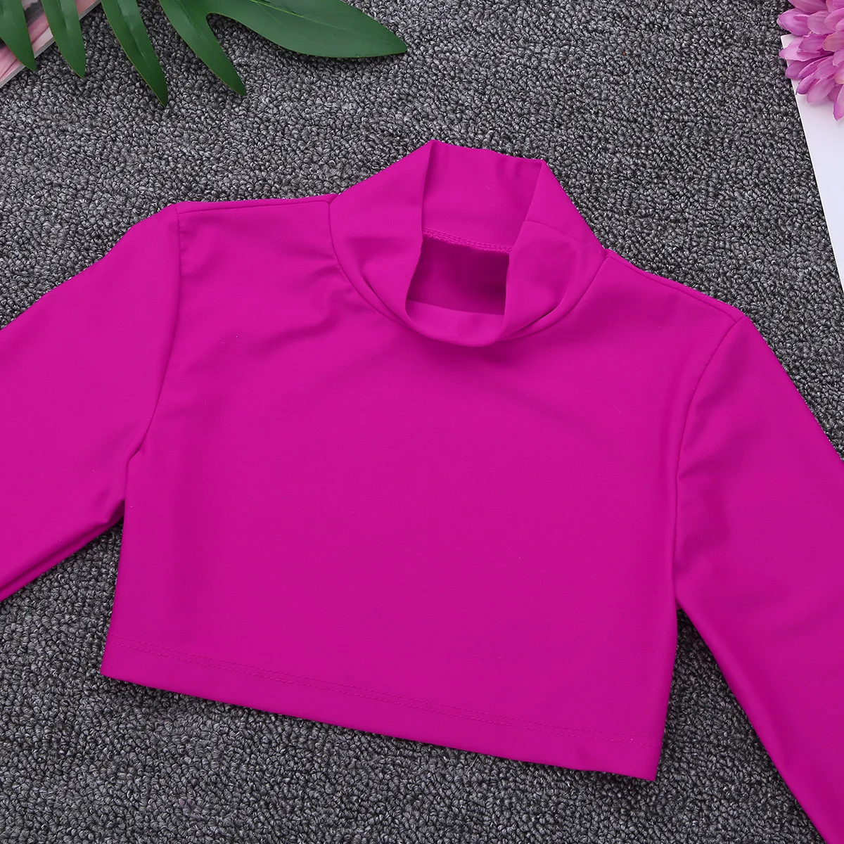 Детские Балетные укороченные топы для девочек, однотонные майки с длинным рукавом для фотографий, для выступлений, тренировок, спорта, фитнеса
