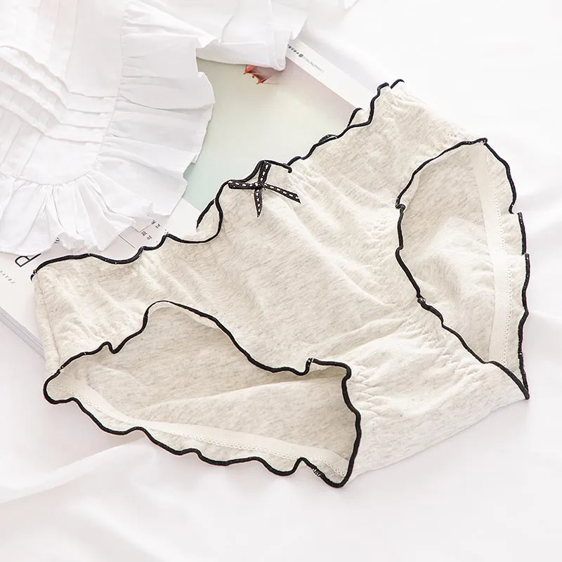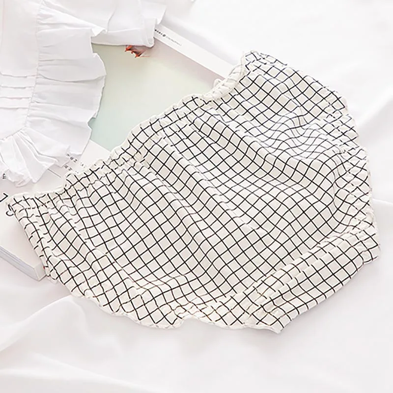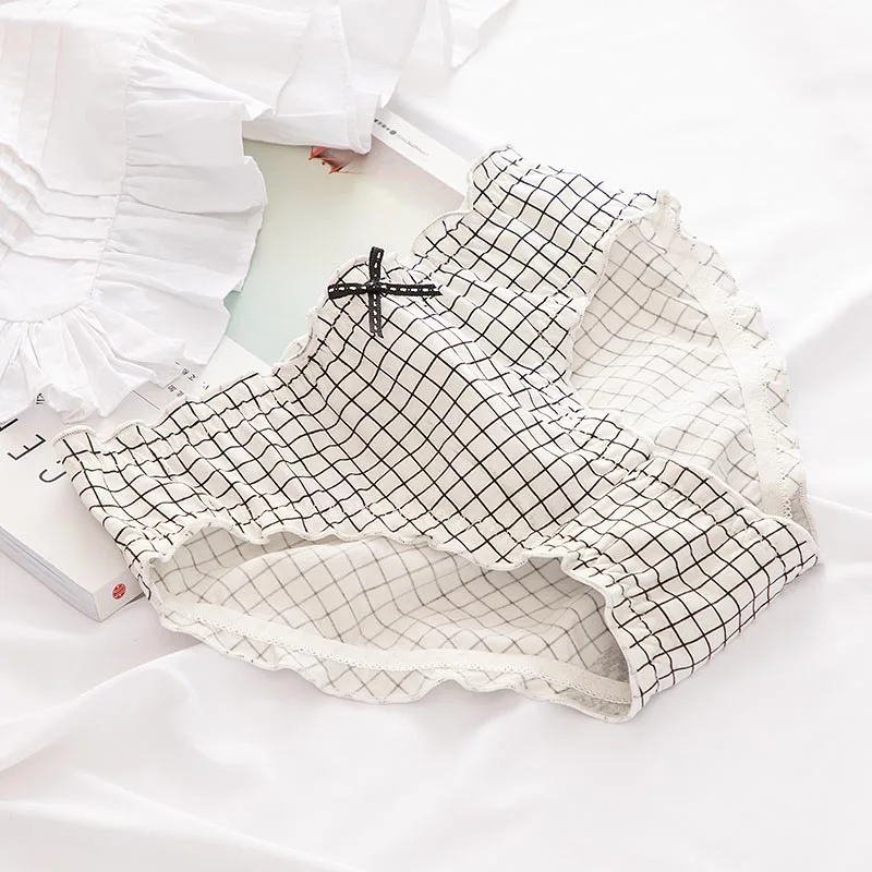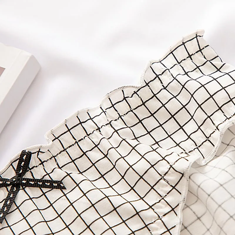 Женские Бесшовные хлопковые трусики, нижнее белье, черные, белые полосатые клетчатые женские трусы, Симпатичные дышащие хлопковые трусы с оборками, нижнее белье