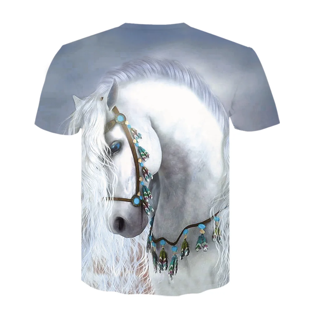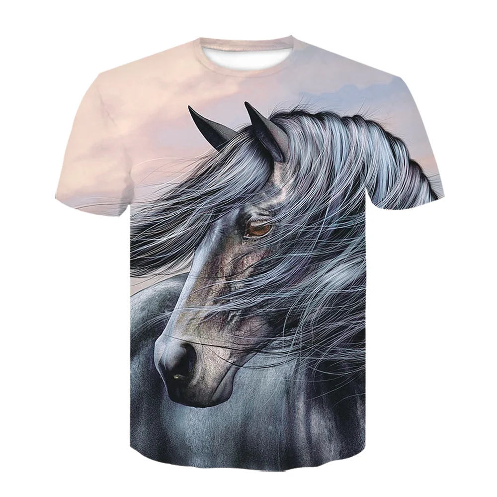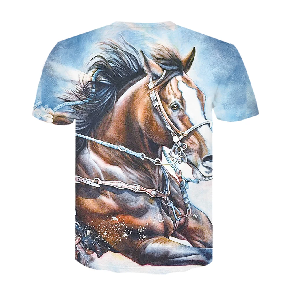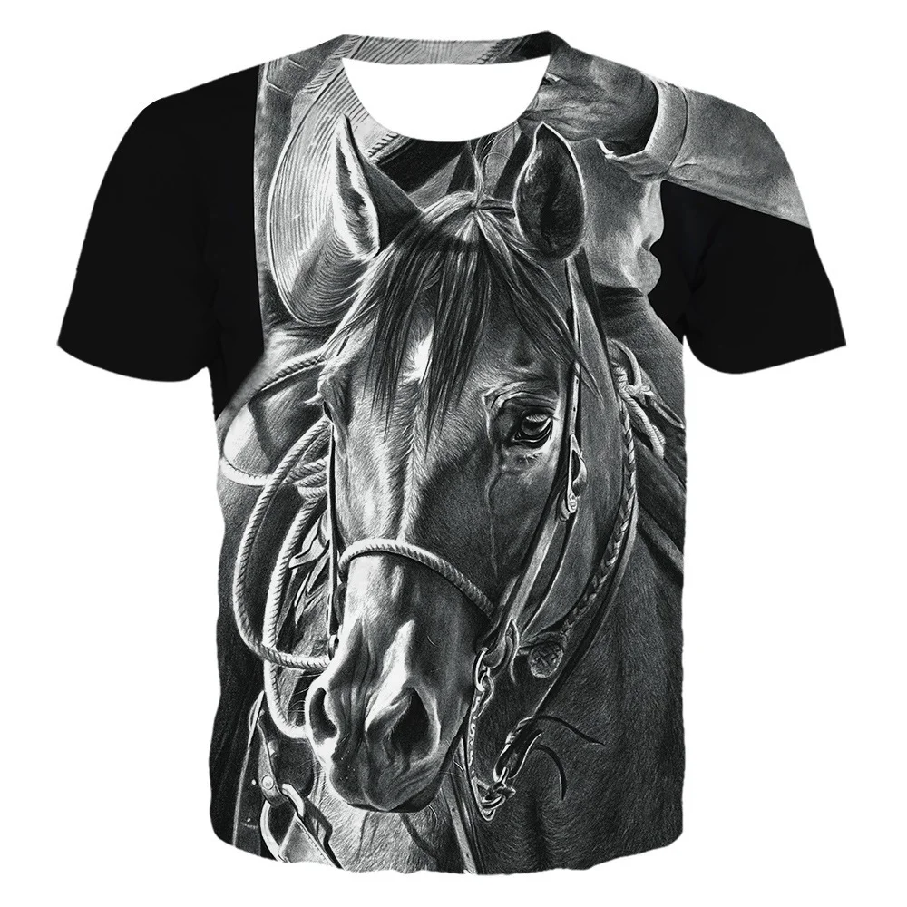 Новинка, футболка с 3D рисунком животных, мужские Модные повседневные футболки с круглым вырезом, МужскаяЖенская крутая одежда, дышащая Повседневная футболка с лошадью