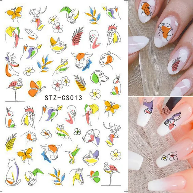 Акварельные Цветы, наклейки для ногтей, искусство ногтей, абстрактные украшения для лица, Стикеры для ногтей, дизайнерская маникюрная фольга с животными