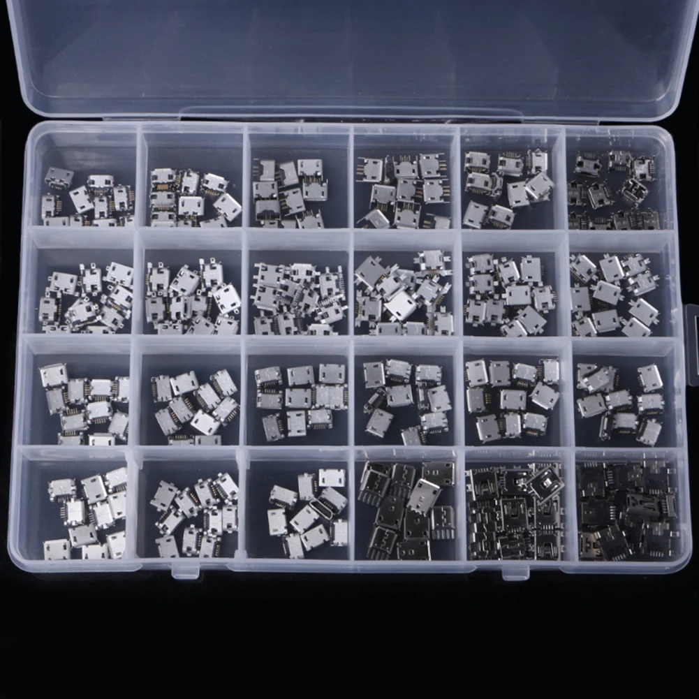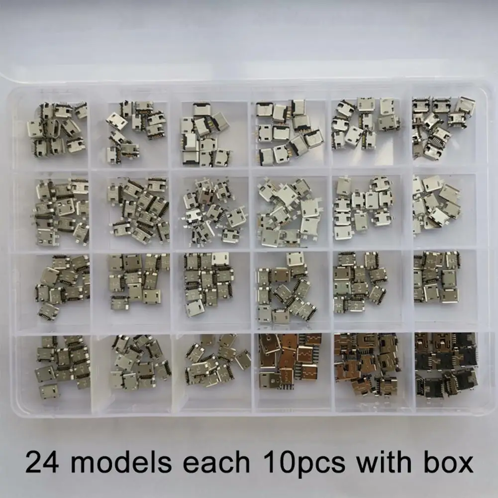 240 шт.корт. 24 модели микро USB Разъем гнездо USB зарядные Разъемы Набор для MP3 Huawei Samsung SMD DIP набор гнезд комплект