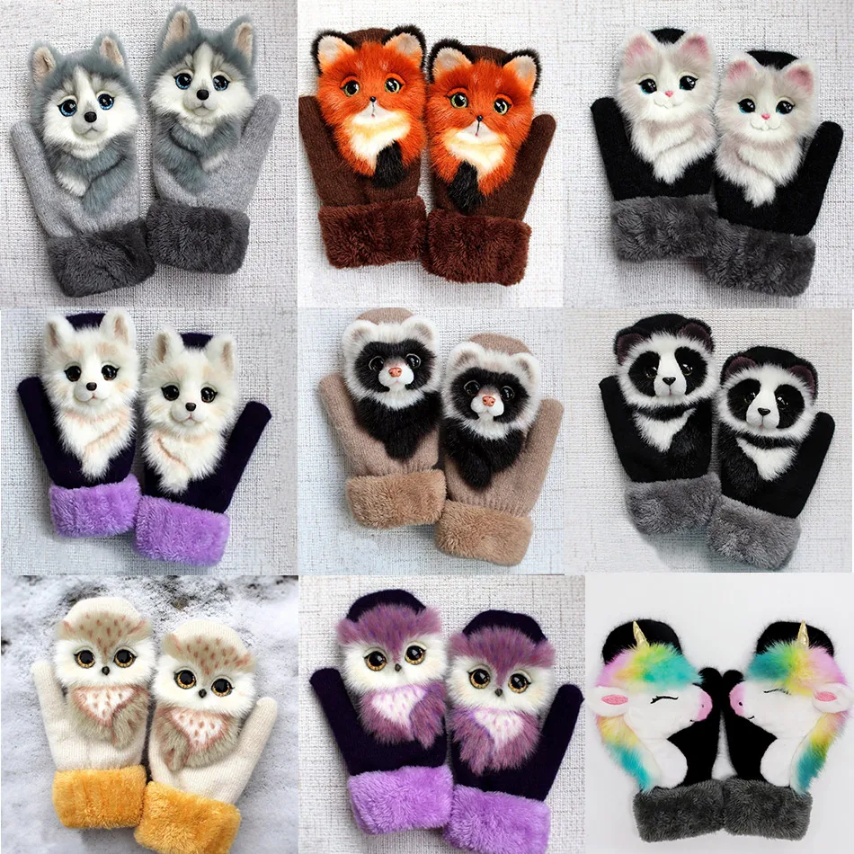 Новинка 2021, лидер продаж, Зимние перчатки для подростков, женские рождественские Дизайнерские теплые детские перчатки с искусственным животным 22 см, с мехом внутри