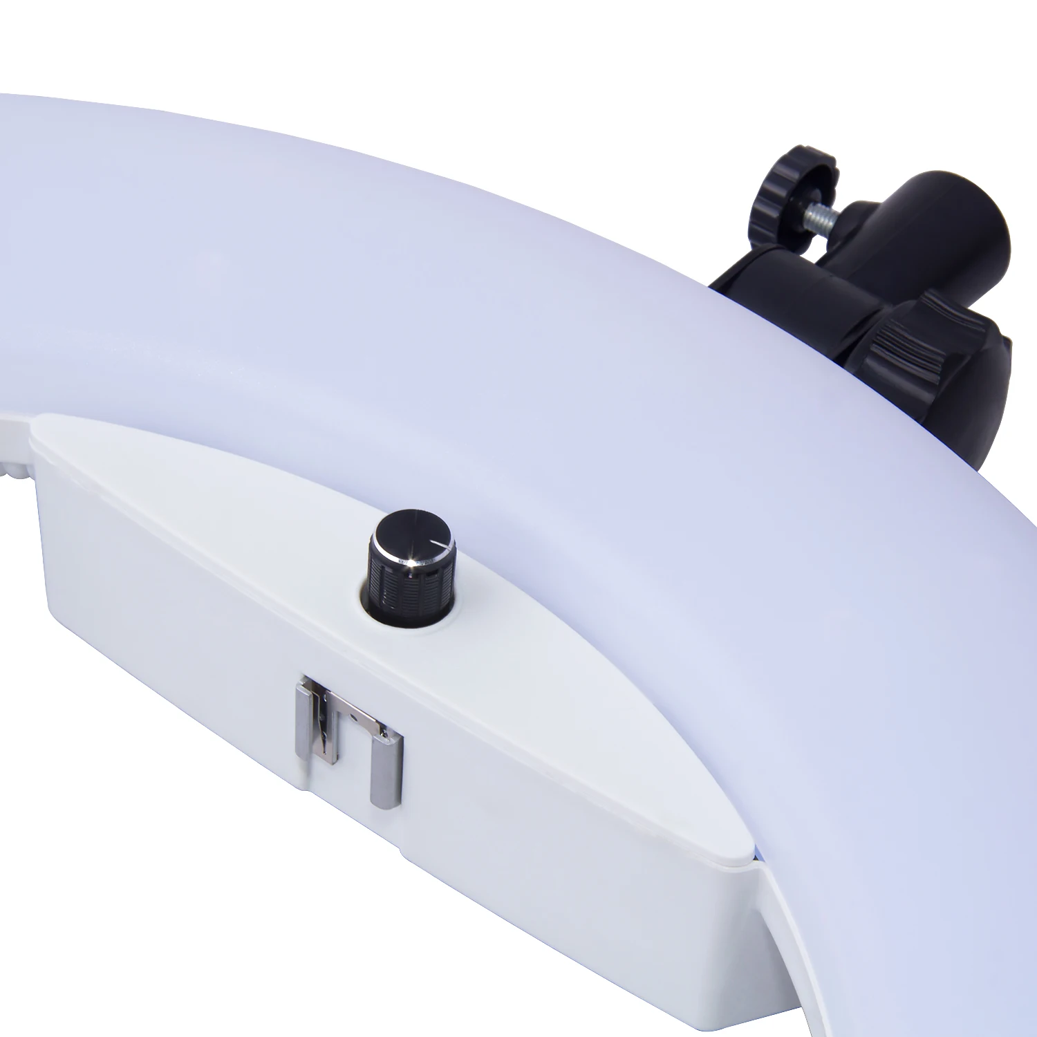 Особенности:FOSOTO FE-480II двухцветный кольцевой светильникИсточник: светодиодный светильник SMD 480 шт.Напряжение переменного тока: 110V-220V постоянного тока: 14,5 VМощность: 96 ВтCRI (индекс цветопередачи): >95Цветовая температура: 3200-5600KМакс. Освещенность: 5000lux/0,5 m 4400kНаружный диаметр 18 "/45 смВнутренняя Диаметр 11,8 "/30 смПосылка:1x светодиодный кольцевой светильник1x Шнур Питания1x адаптер переменного тока1x держатель для телефона1 косметическое зеркало1x Руководство пользователя1x дальний пульт дистанционного управления1 штатив-Трипод