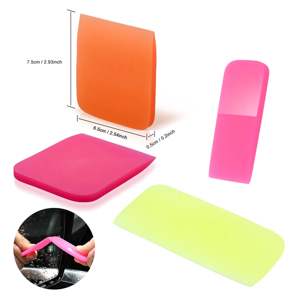 1. Скребок изготовлен из прочного PPF резинового материала, может использоваться в сухом или мокром виде.2. Резиновый материал делает его удобным в использовании, этот скребок не оставит царапин на поверхности во время работы.3. Чтобы удовлетворить несколько требований, можно выбрать две разных твердости по вашему желанию.Желтый/оранжевый-мягкийОн мягкий, чем розовый, больше подходит для изогнутых поверхностей.Синий/розовый-Средний МягкийНемного прочнее оранжевого, который больше подходит для обертывания плоских поверхностей.Мини-скребок может быть использован в небольшом углу и углах.