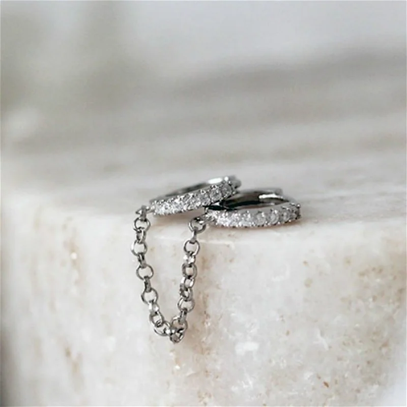 Изысканные трендовые серьги для женщин, серьги-кольца с двойным цирконом, Простые индивидуальные серьги с цепочкой, ювелирные изделия для помолвки