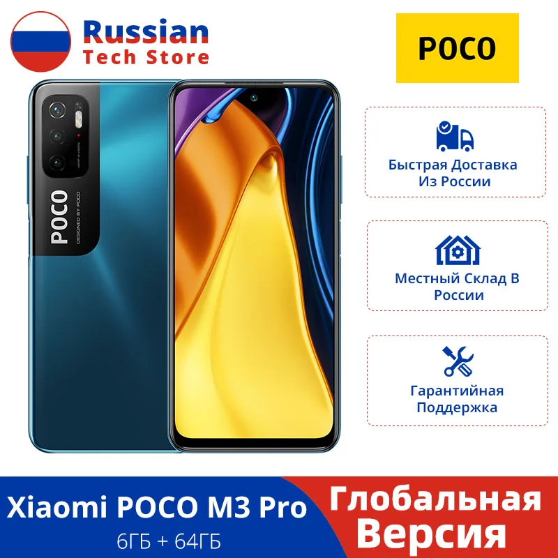 POCO M3 Pro 4 Гб + 64 Гб/6 ГБ + 128 Гб глобальная версия с оригинальным зарядным устройством ЕС!