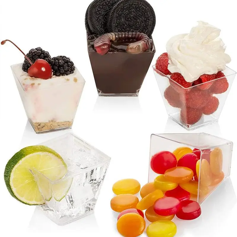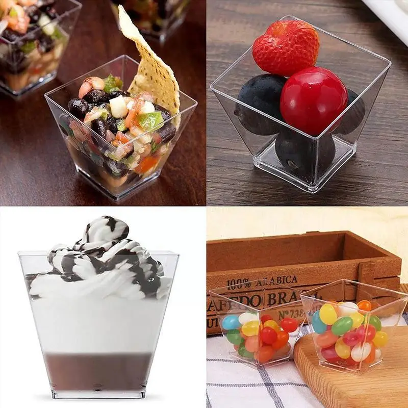 Одноразовые пластиковые чашки объемом 60110160 мл, прозрачная трапециевидная миска для йогурта, контейнер для еды, конфеты, десерт, прозрачный J0T9
