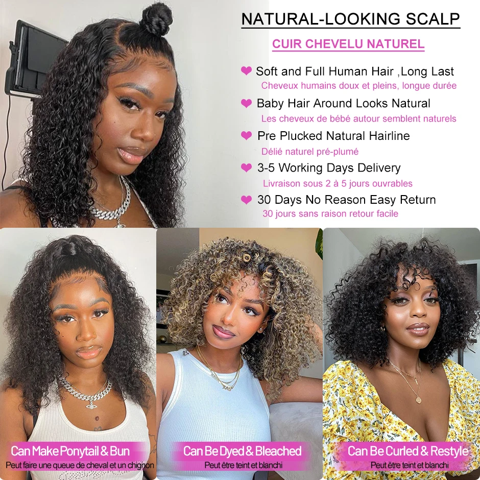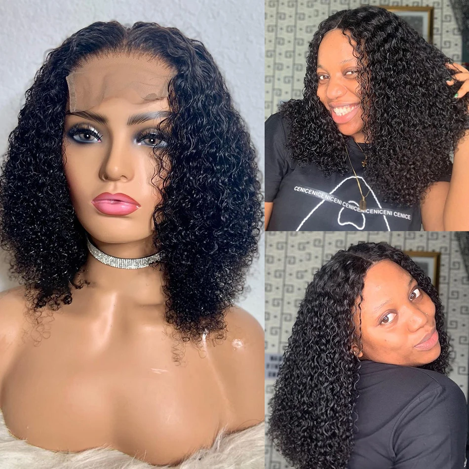 Короткий парик Bob Jerry с кудрявыми волосами 4x4, фронтальные пари...