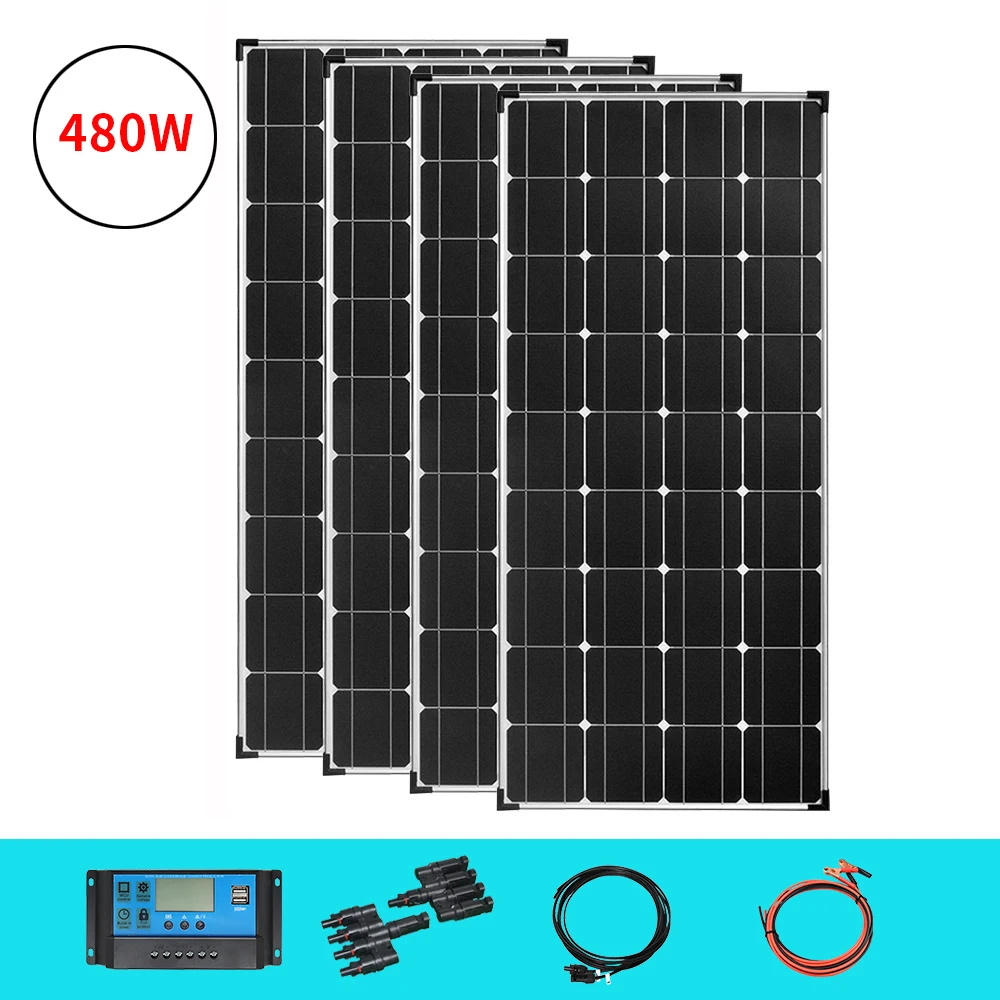 500 Вт набор солнечных панелей полная Максимальная мощность 4 шт. 18 в 120 Вт Панель Солнечное зарядное устройство пластина фотоэлектрическая для автомобиля Лодка Караван RV дом