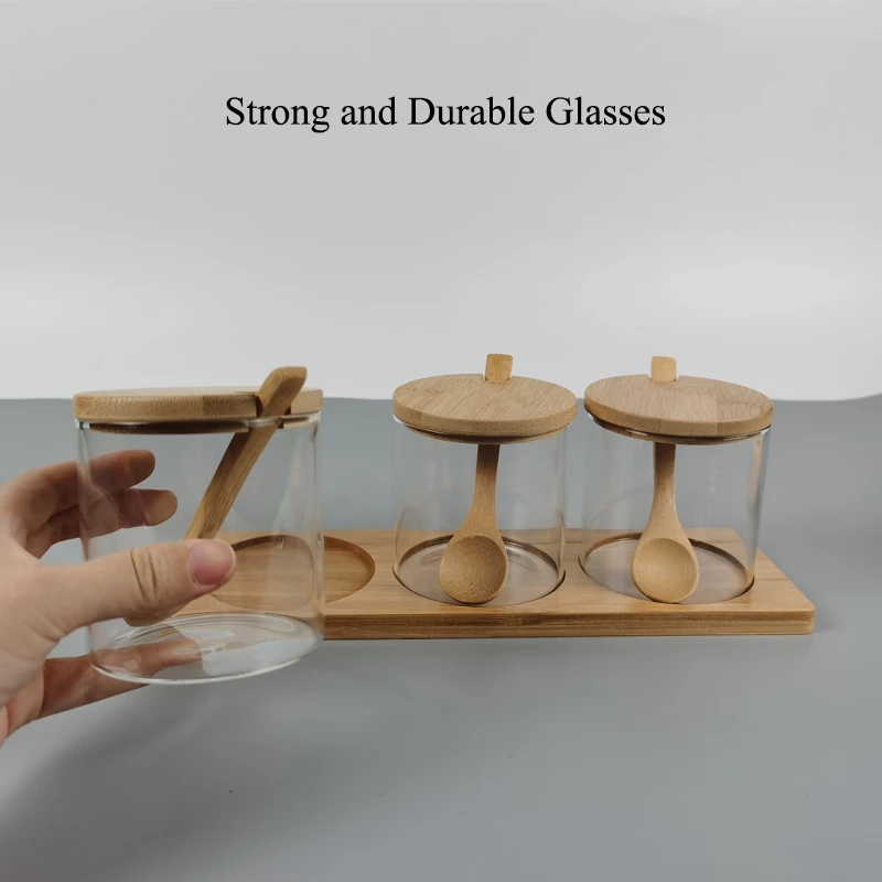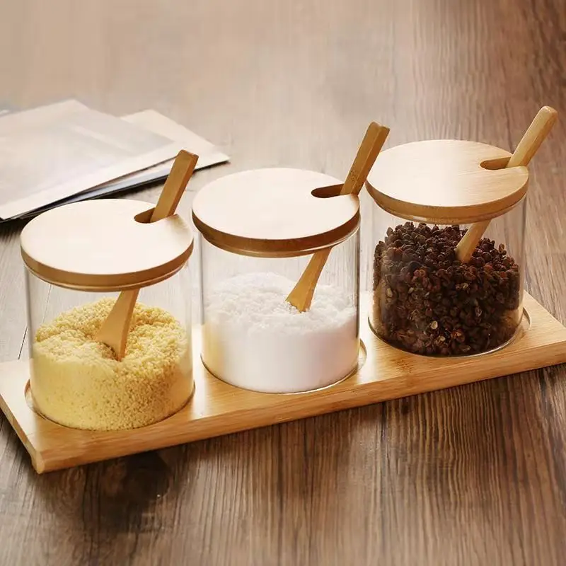 Набор из 3 предметов, банка для хранения приправ, конфеты, печенье, чай, кофе, бобы, бутылка-органайзер, деревянная крышка, контейнер, специи, еда, зерновые контейнеры для закусок