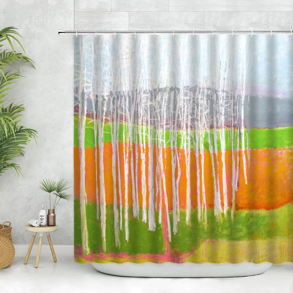 Занавеска для душа с натуральным ландшафтом, Весенняя Водонепроница...