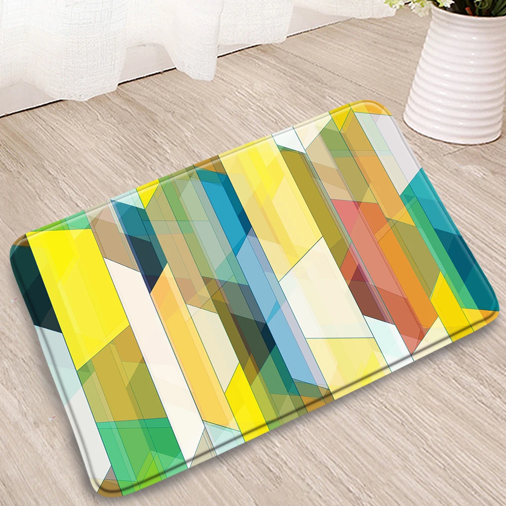 Занавеска для душа желтаясиняязеленая, в современную художественную полоску