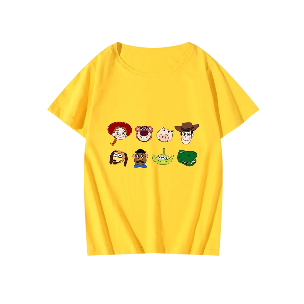 Летняя футболка для женщин с коротким рукавом, повседневная желтая свободная футболка с круглым вырезом и героями мультфильмов, уличная женская одежда