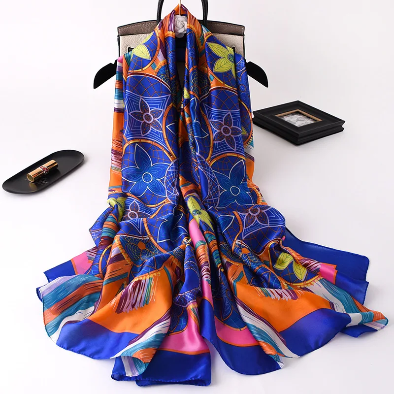JTVOVO 2021 Новинка 90x180 см роскошный брендовый имитационный шелк Женский Летний Пляжный шарф с винтажным принтом зимний платок палантин