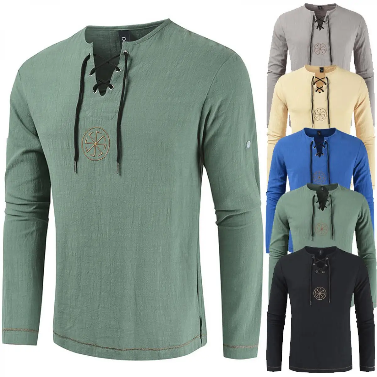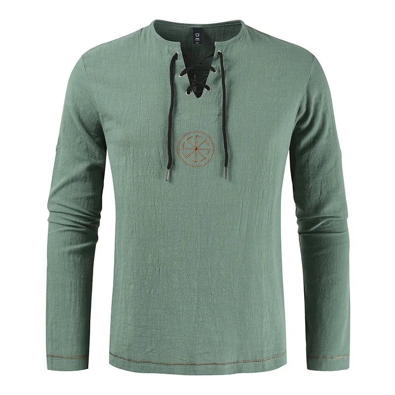 Мужская рубашка с вышивкой в стиле древней славянской эпохи средневековой эпохи, костюм для косплея # Hot 2021