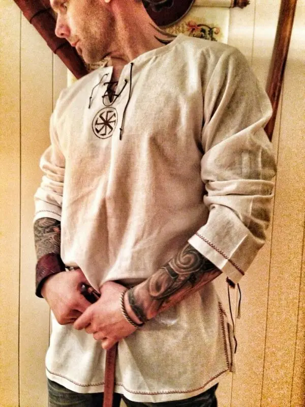 Рубашка мужская, средневековый боевой воин, из льна, с вышивкой