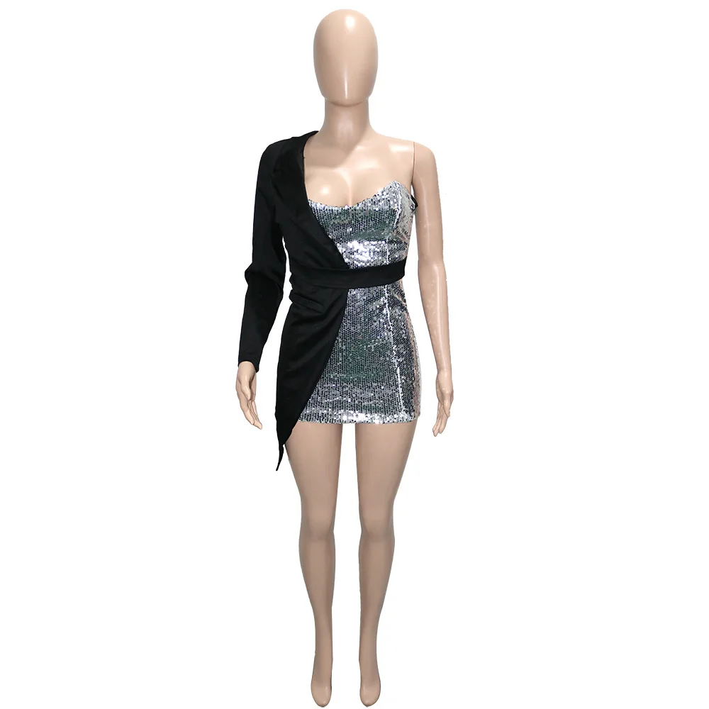 Женское платье-блейзер с длинным рукавом, на одно плечо