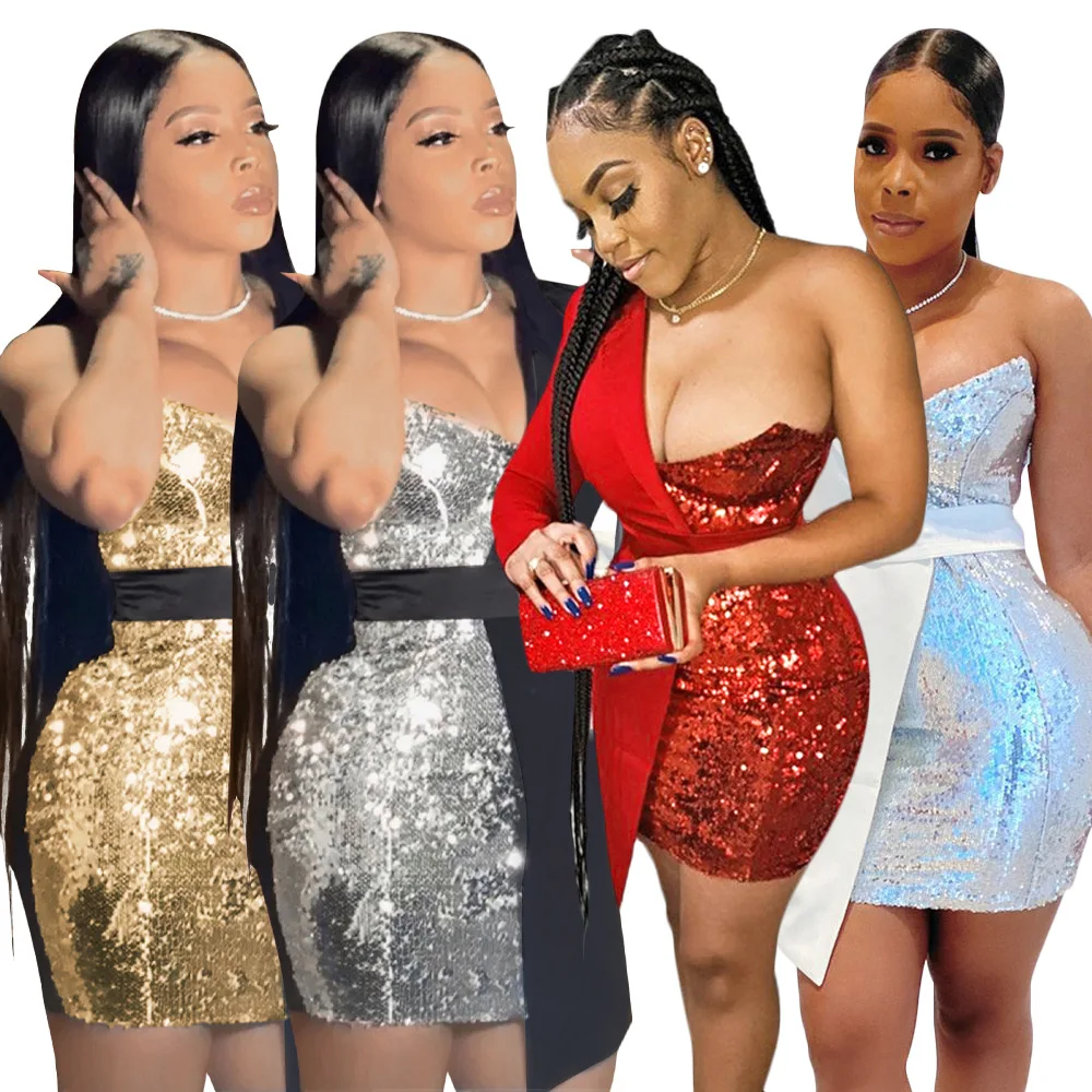 Рождественский Блейзер Adogirl на одно плечо, мини-платье для женщи...