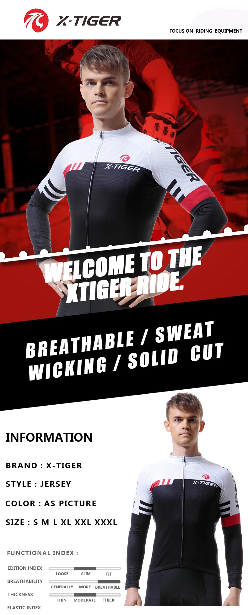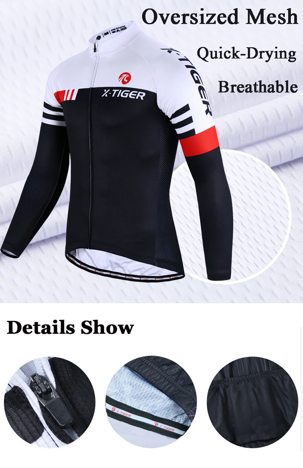 X-TIGER, длинный рукав, Джерси для велоспорта, Мужская Осенняя дышащая майка для горного велосипеда, Весенняя быстросохнущая Мужская велосипедная рубашка