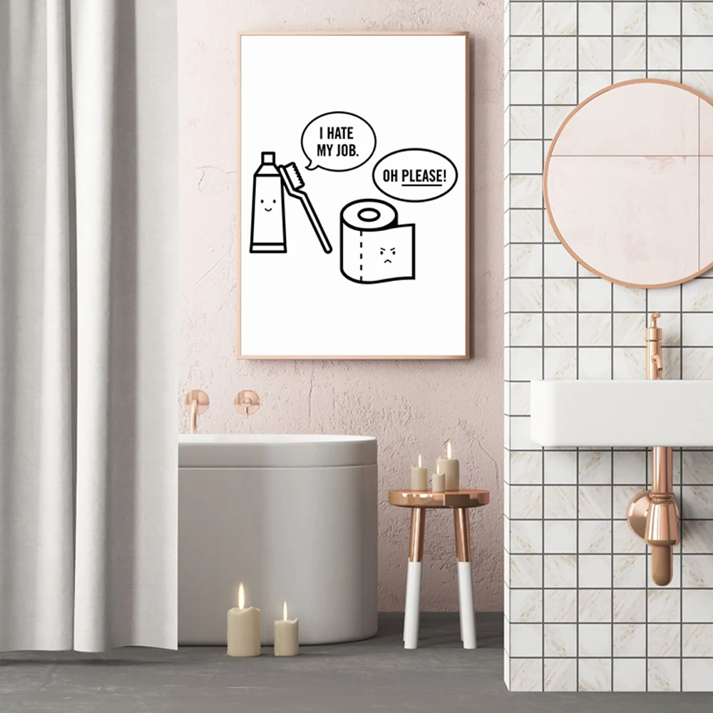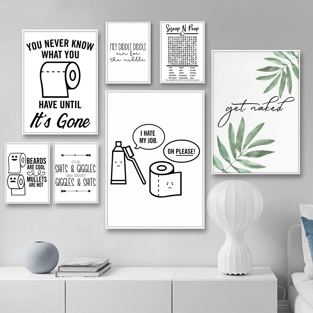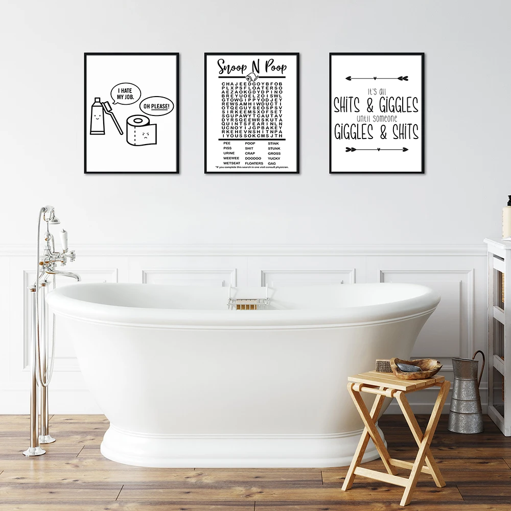 Настенные художественные принты для ванной черного и белого цвета, забавные вывески, постеры на холсте для ванны, скандинавский Декор для ванной и дома, без рамки