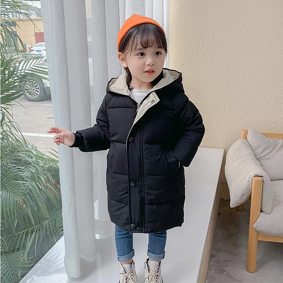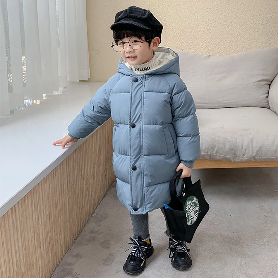 Детское пуховое пальто, зимняя парка с хлопковой подкладкой для мальчиков и девочек-подростков, утепленные Длинные куртки, верхняя одежда для малышей