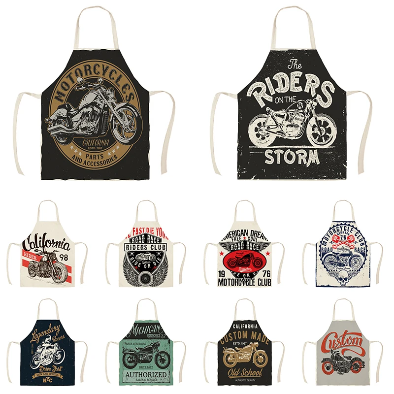 Кухонный Фартук, Постер для мотоцикла, Художественная печать букв, хлопковые льняные фартуки для мужчин, домашние инструменты для уборки, кухонный фартук