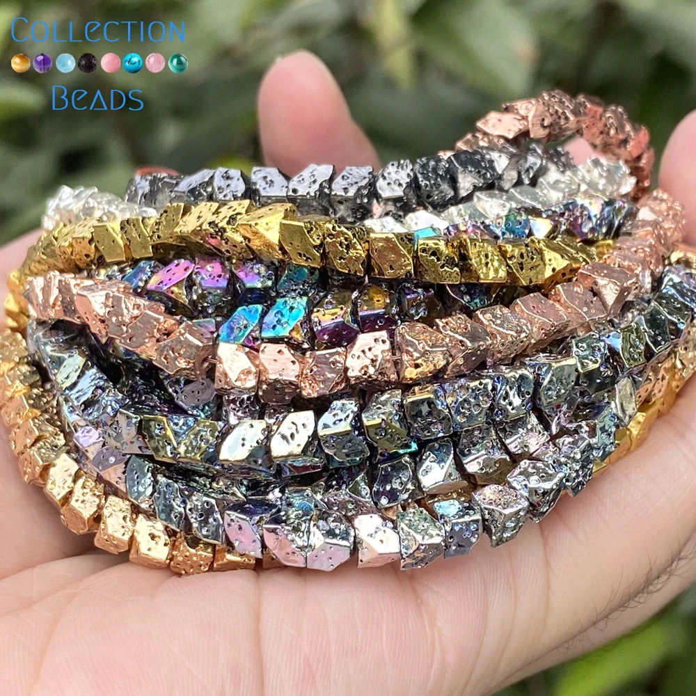 Бусины из натурального камня, нестандартные цветные бусины из лавового камня с вулканическим покрытием для изготовления украшений вручную, аксессуары для браслетов Diy 15''