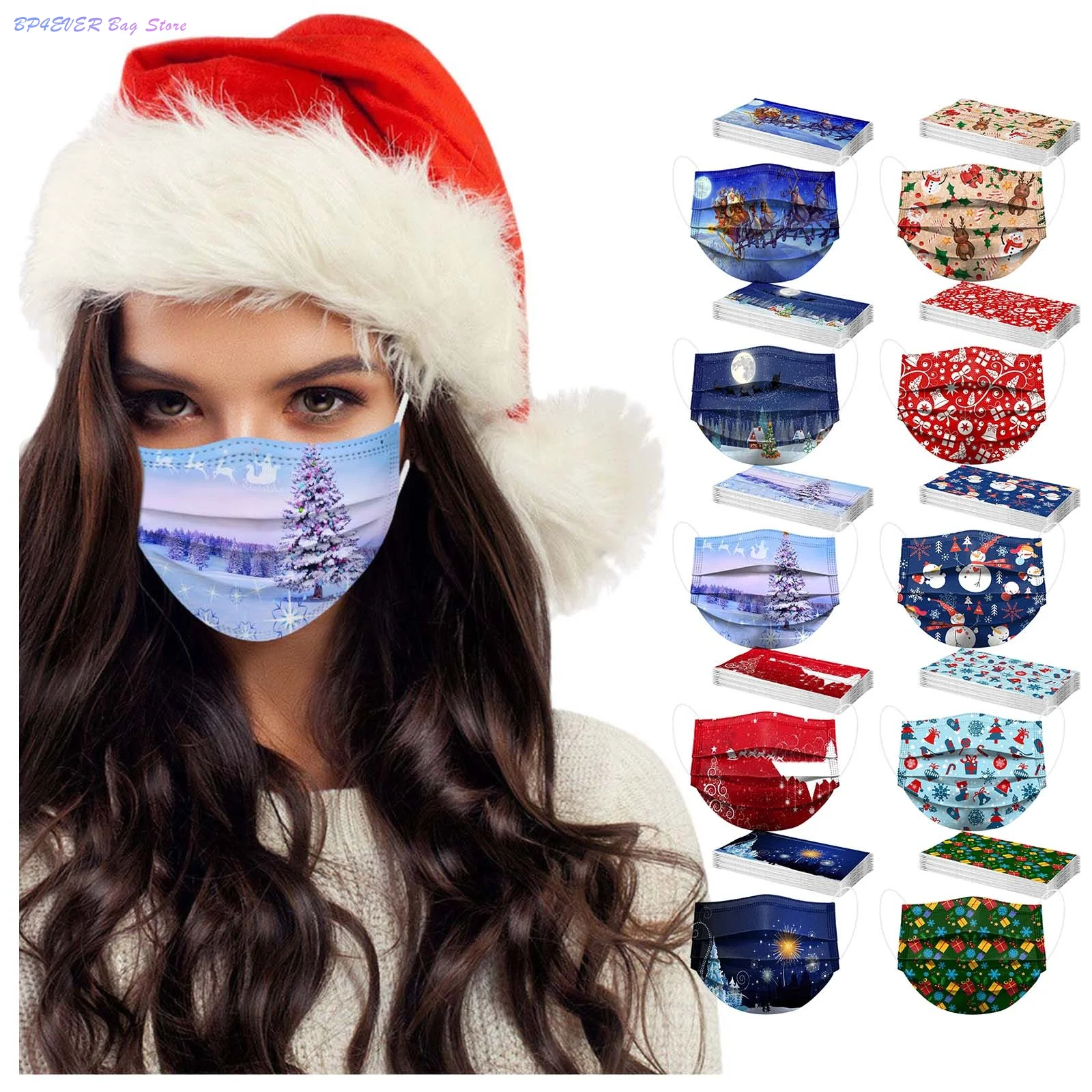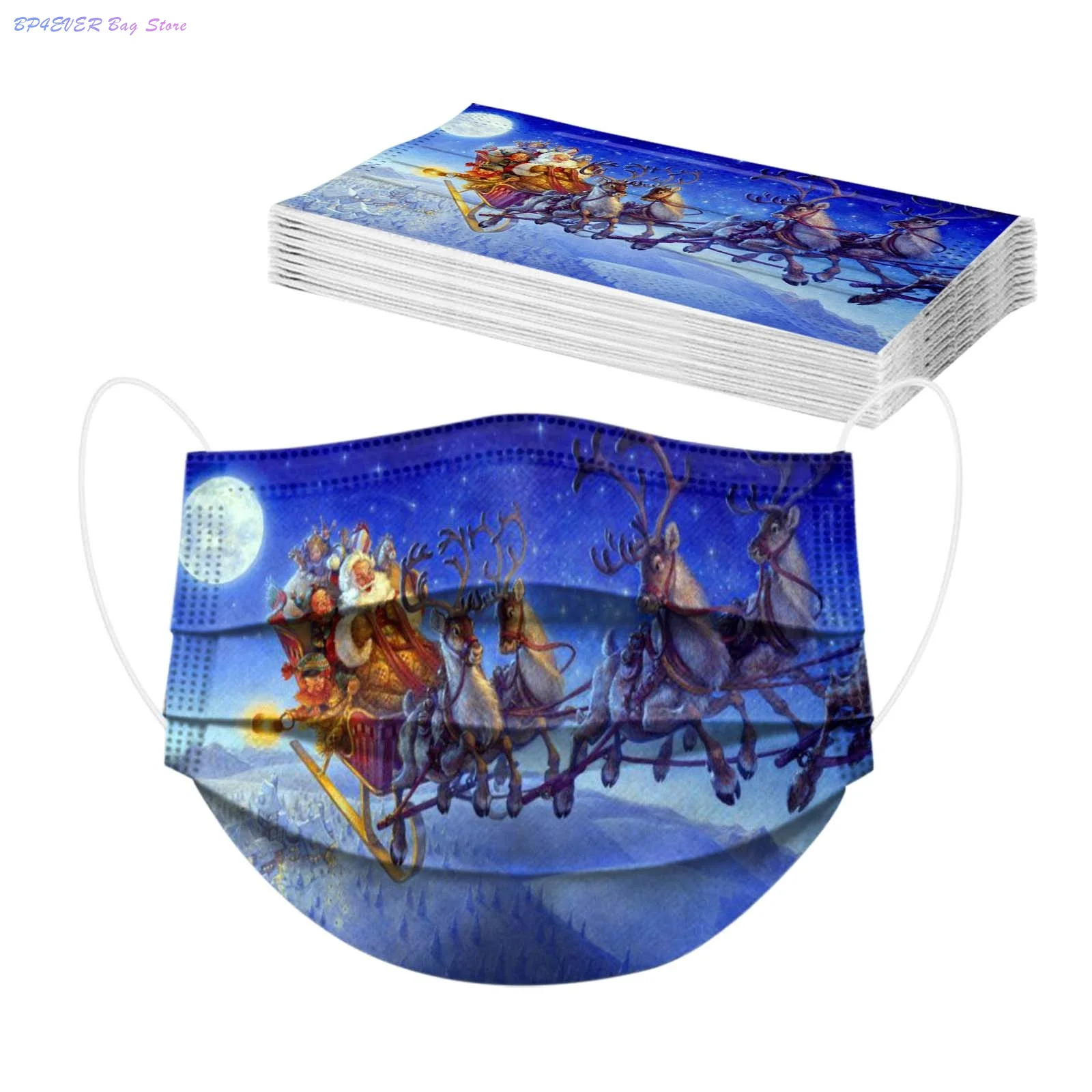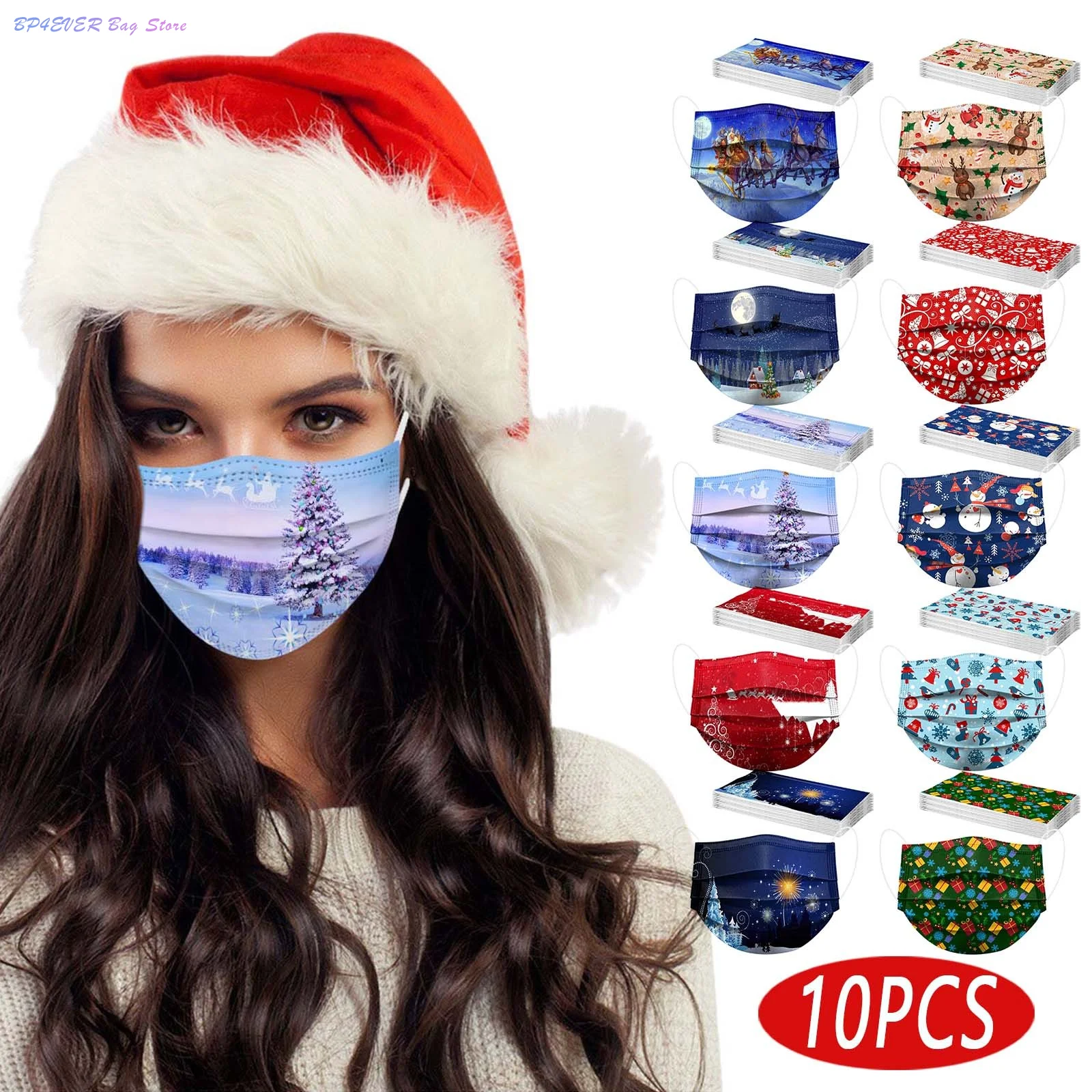 Маска для взрослых с мульти-принтом на Рождество, 10 шт., 3-слойная одноразовая Маска, модная Маска для косплея на Хэллоуин, защитная Маска для рта