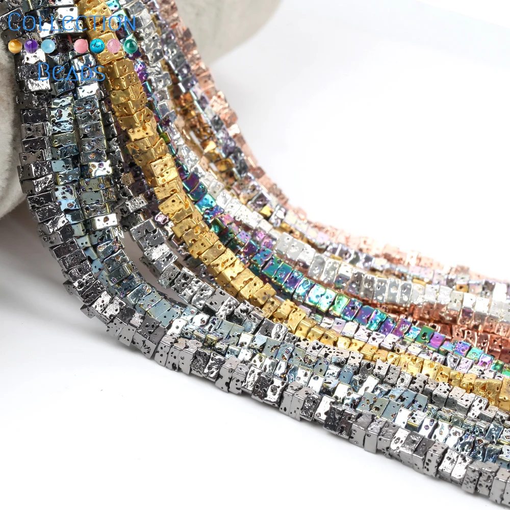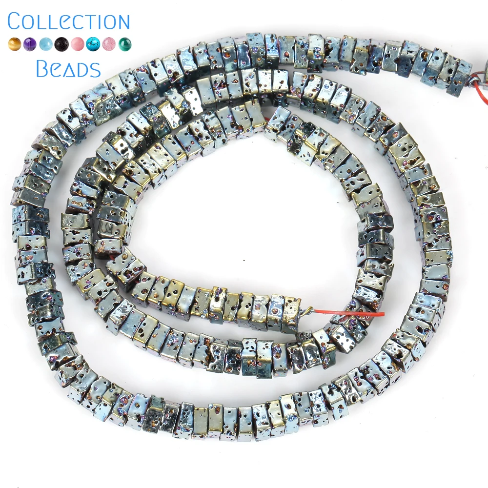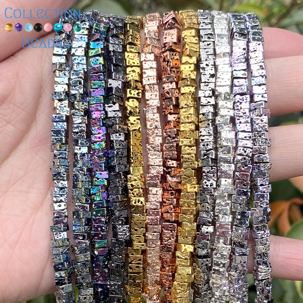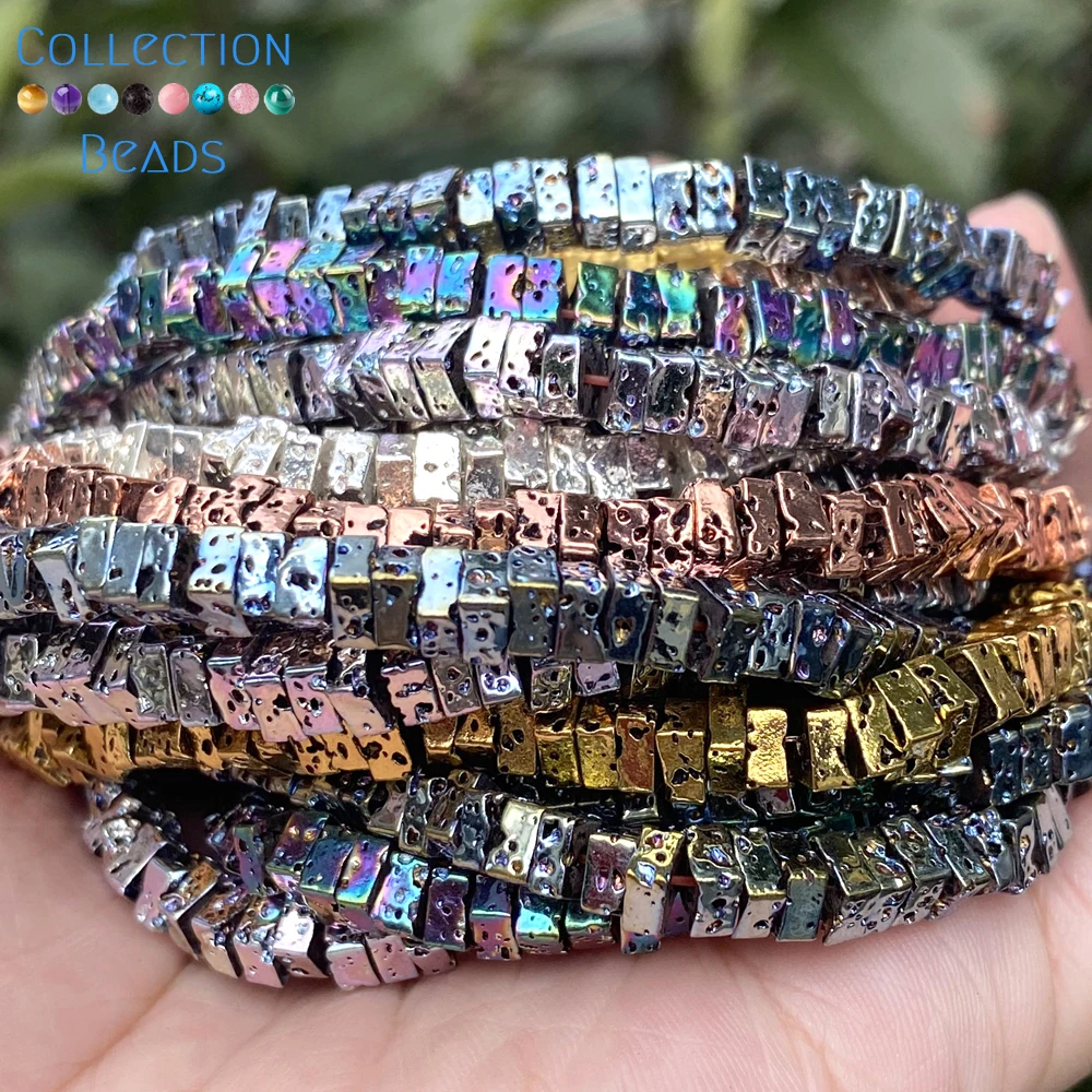 4x2 мм бусины из натурального камня квадратное цветное покрытие вулканические бусины из лавового камня для изготовления украшений вручную аксессуары для браслетов своими руками