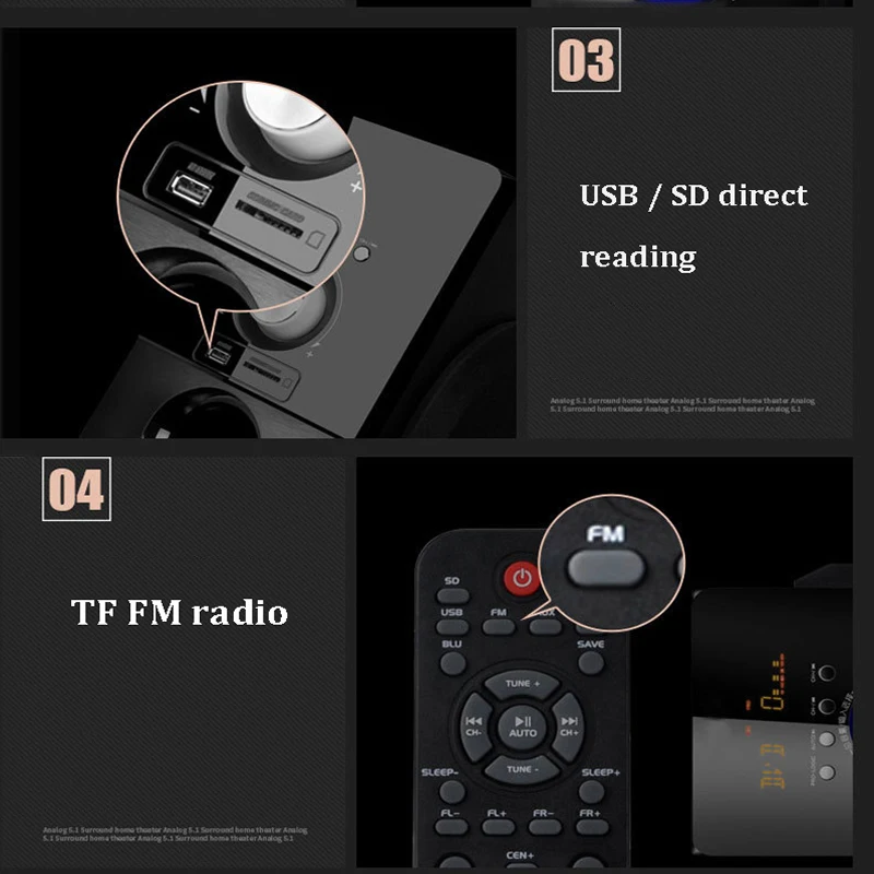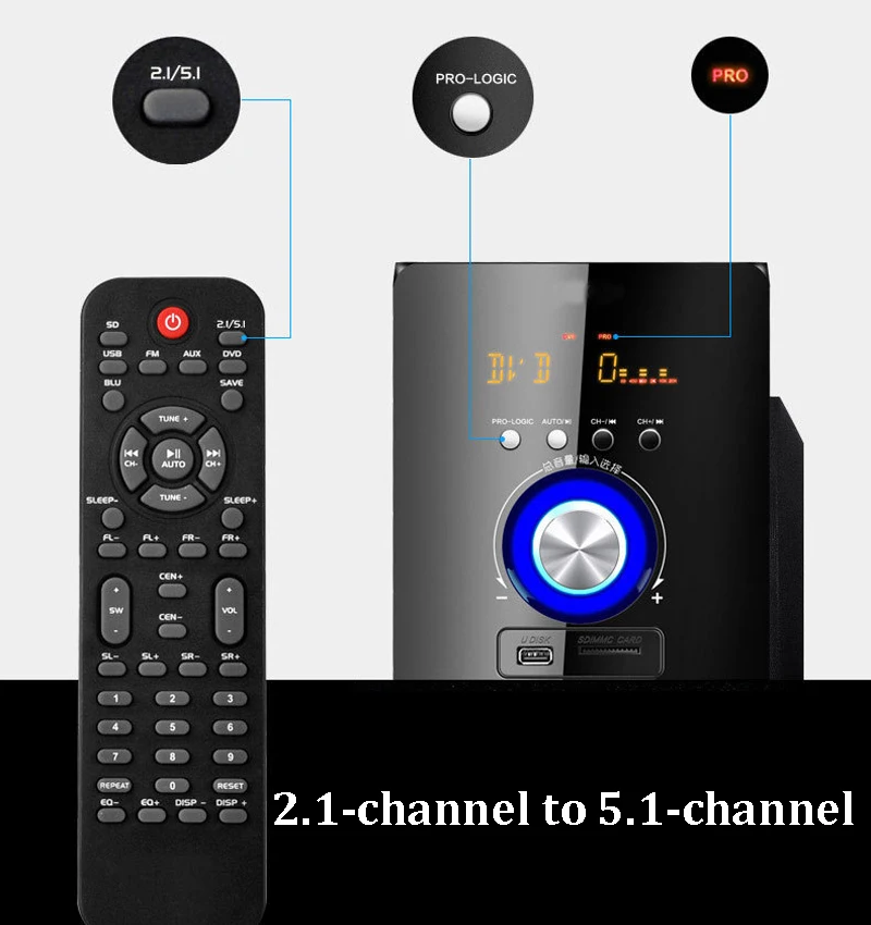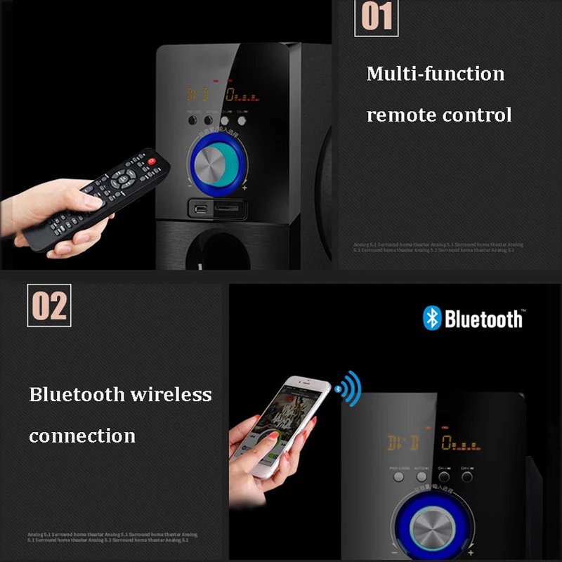 Bluetooth-Колонка для домашнего кинотеатра, 5,1 каналов, с пультом ДУ