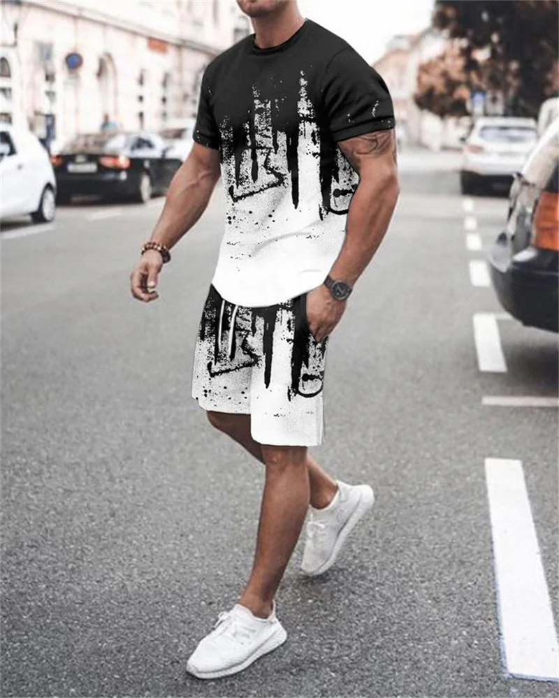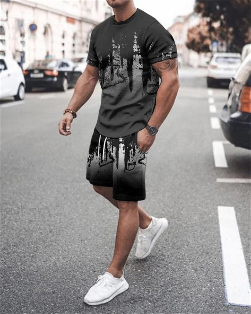 Костюм мужской летний с круглым вырезом и коротким рукавом, футболка с 3D-принтом льва, спортивная одежда, шорты с круглым вырезом и короткими рукавами, 2021