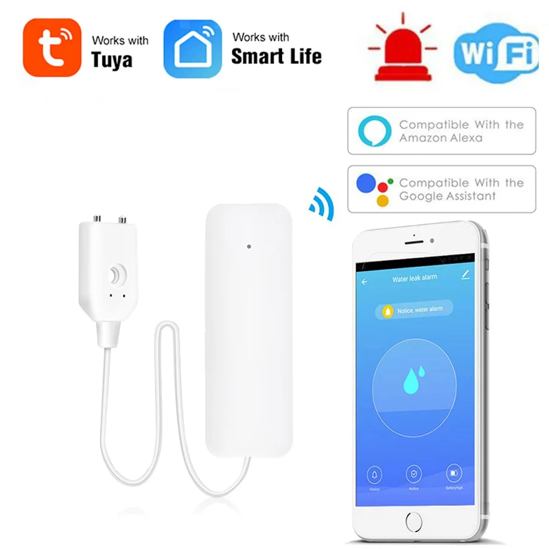 Датчик утечки воды Tuyasmart с Wi-Fi, детектор утечки, со звуковым сигналом, работает с приложением