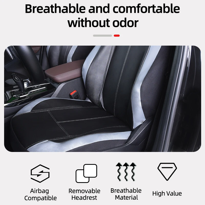 Инновационная ткань и дизайнОбновляет внешний вид старых или грязных сиденийЗащищает от брызг, пятен, выцветания, грязи и шерсти домашних животныхЛегко устанавливается и подходит для большинства ковшовых сиденийSuperfit клапан для более плотного, без морщинПодходит для большинства седанов и внедорожников со стандартными сиденьямиПодходит для ковшовых сидений с регулируемыми подголовниками