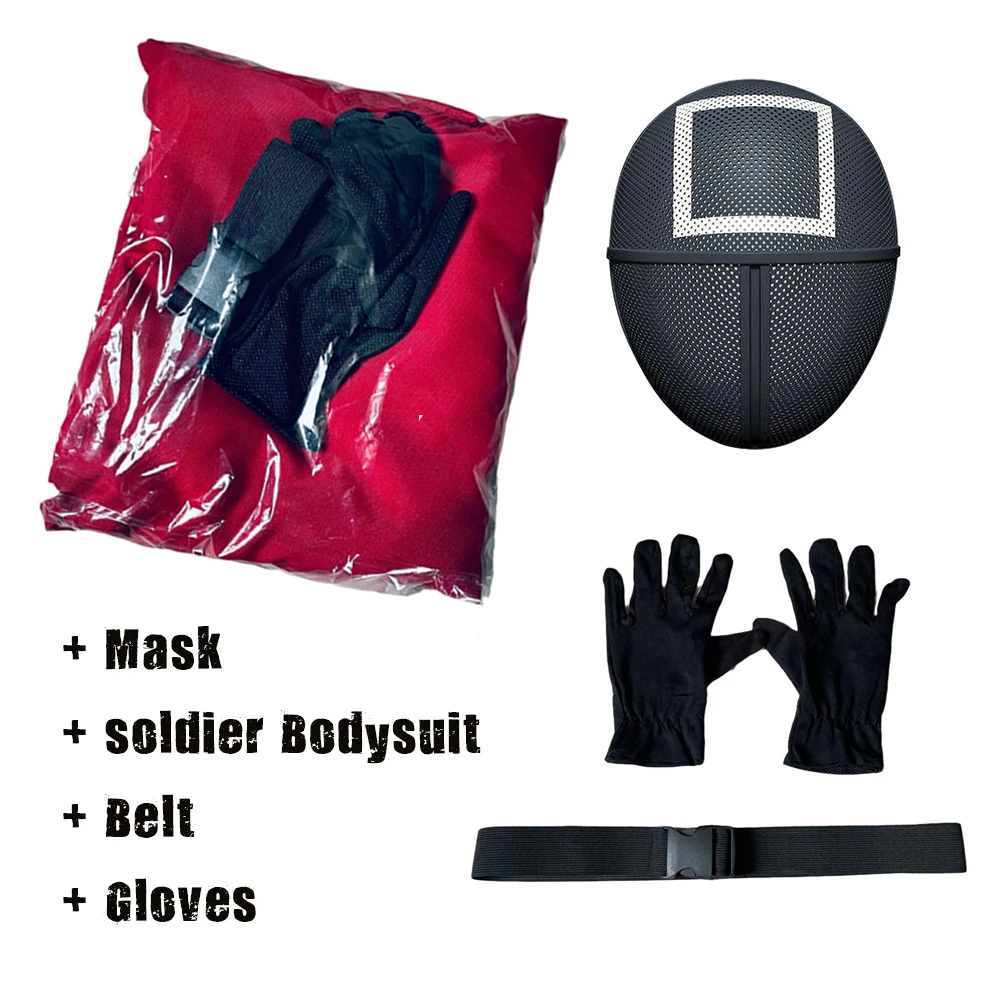 OJBK игра кальмар Солдат Костюм Маска Косплей комбинезон Квадратный Круг треугольник пластиковый шлем Хэллоуин вечеринка наряд круглый шесть Новинка