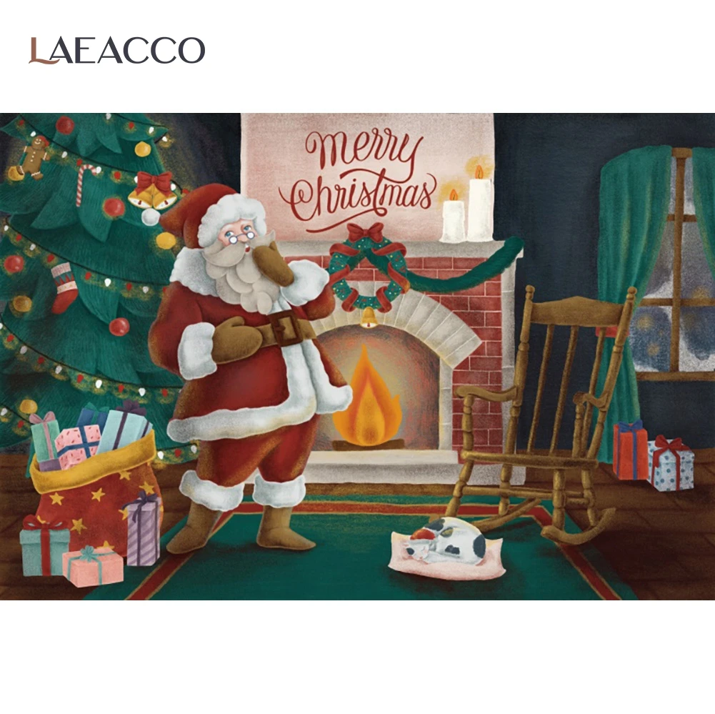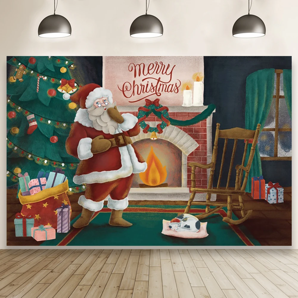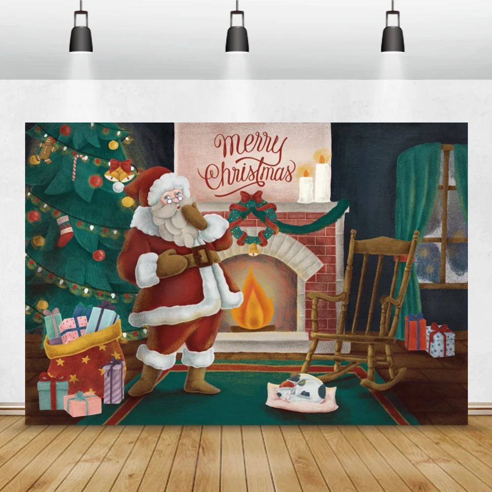 Мультяшный Санта-Клаус Счастливого Рождества камин фотография Фон ребенок портрет семья фотосессия фон декор комнаты