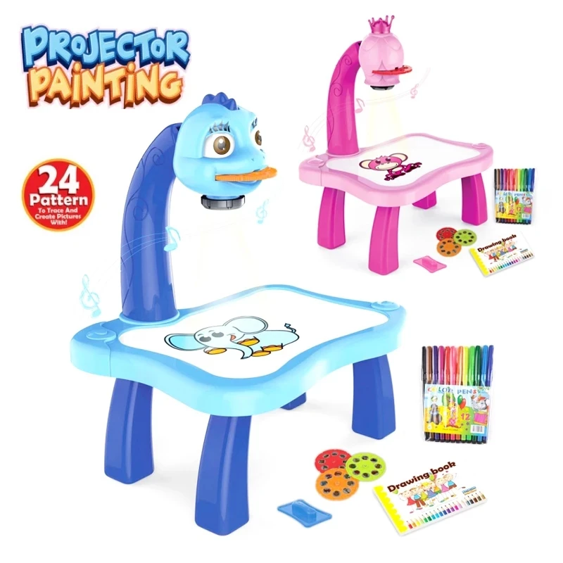 Светодиодный проектор, игрушки для рисования, детская доска для рисования, Настольная проекция искусств Монтессори, детский Обучающий планшет для письма, игрушка для детей