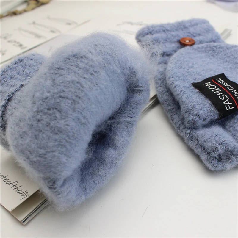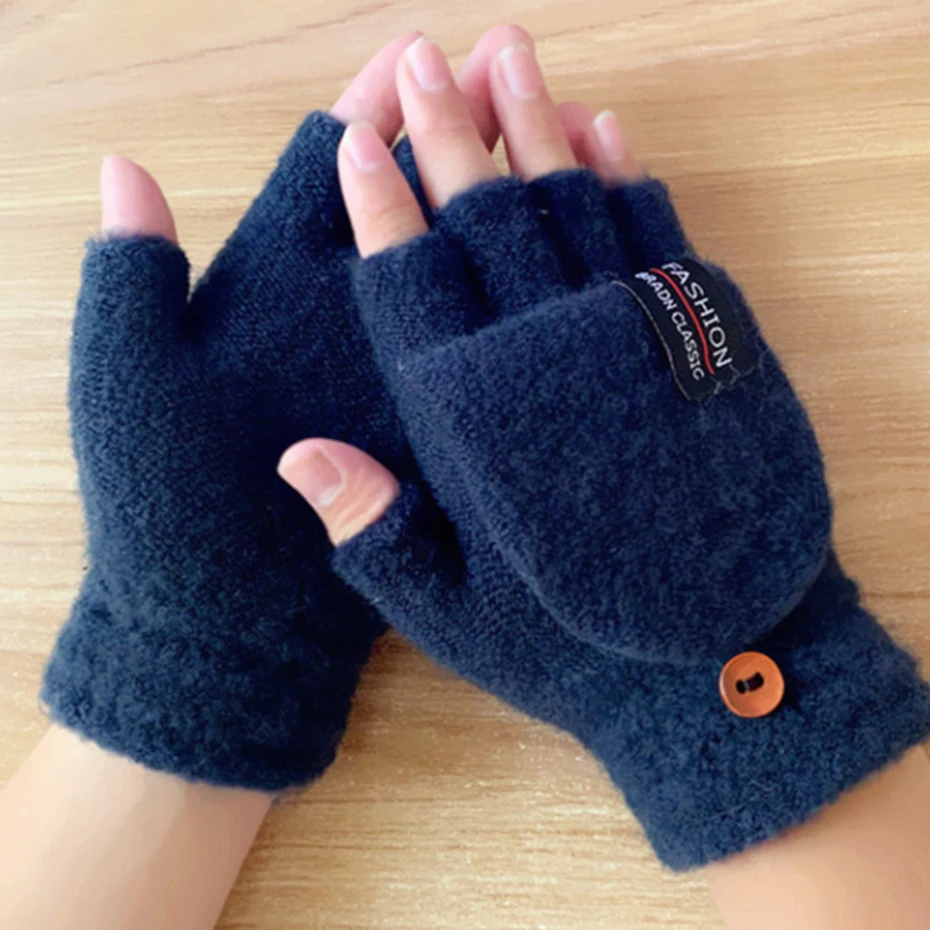 Шерстяные модные перчатки для мужчин и женщин, вязаные однотонные простые утепленные теплые перчатки с откидной крышкой и открытыми пальцами для осени и зимы
