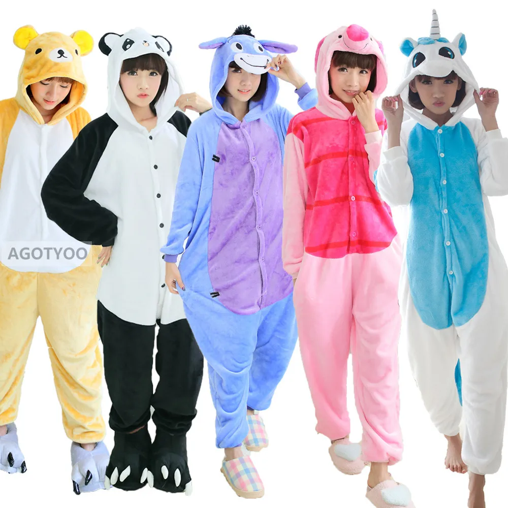 Комбинезон унисекс в виде единорога, зимняя Фланелевая Пижама для взрослых, одежда для сна в стиле Панда для женщин и мужчин