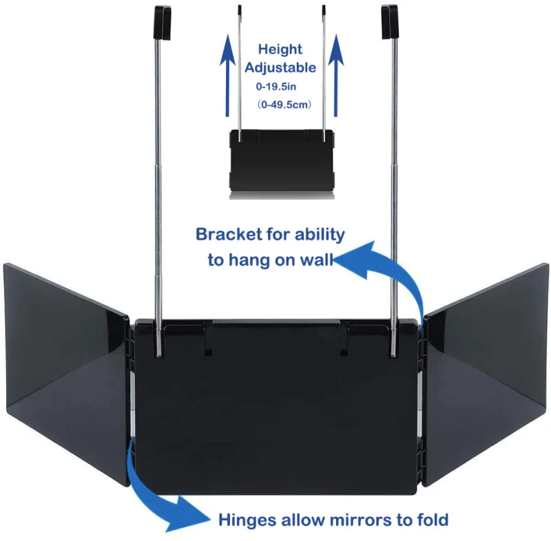 Принимает новый легкий дизайн и не легко поврежден, прочный регулируемый кронштейн, вам нужна только одна дверь, чтобы разместить наше тройное зеркало заднего вида на идеальной высоте. И его легко упаковать, так что вы можете сохранить свое лучшее состояние, независимо от того, дома или в дороге.