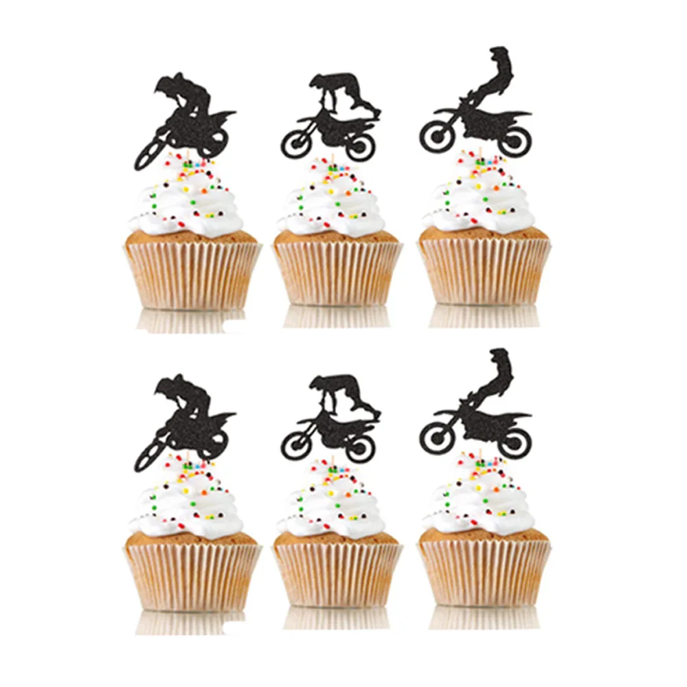 Украшения для мотокросса на день рождения, мотоцикл, велосипед, торт, капкейк, топперы, гонки в клетку, черный, белый флаг, вспышка на день рождения