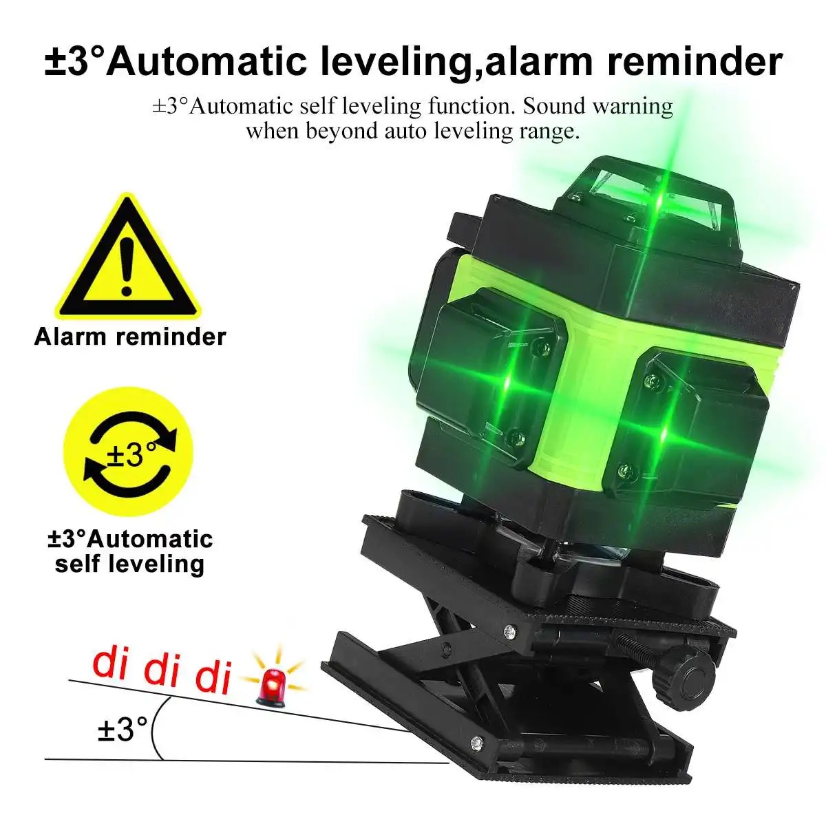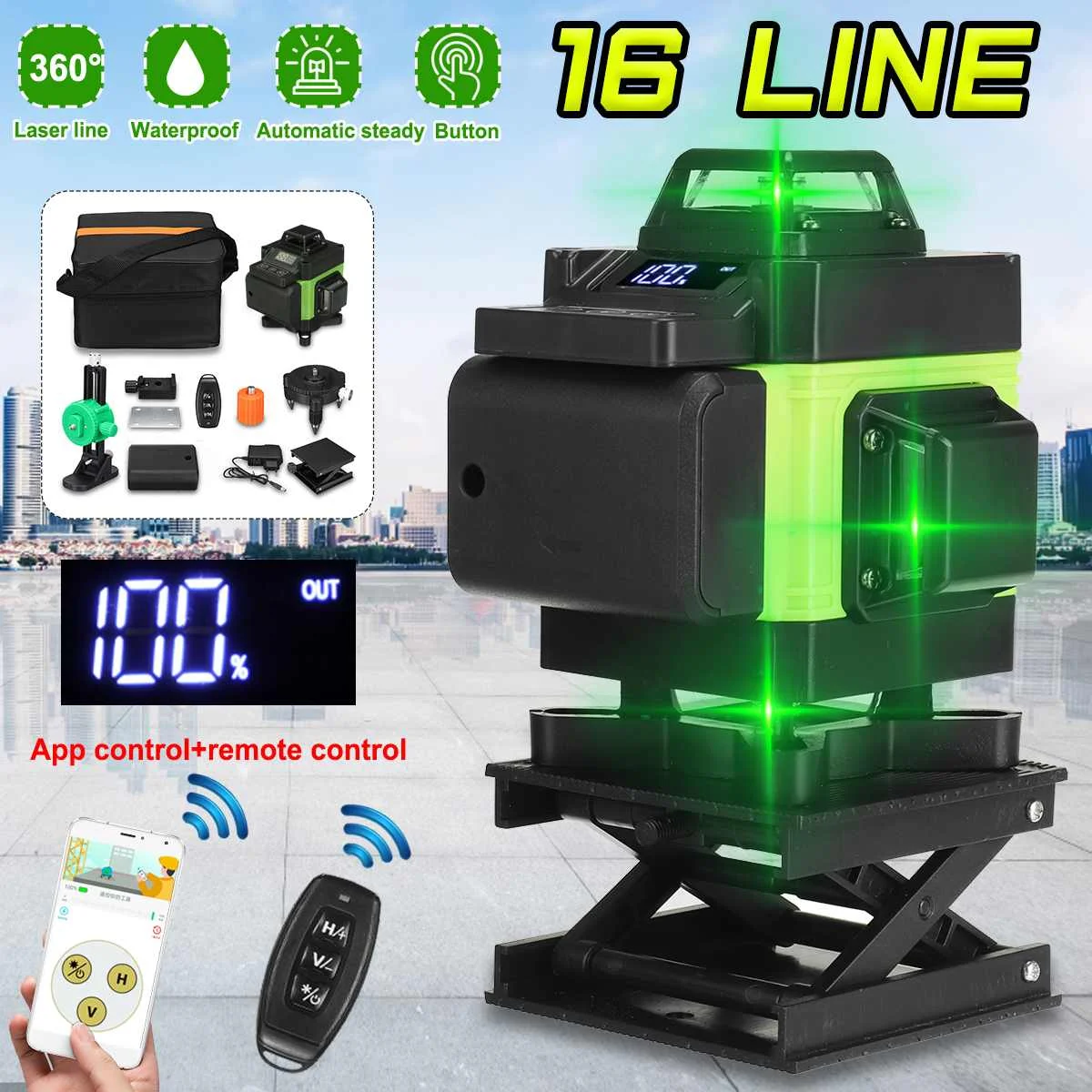 Особенности:● 4D 16 линейный облучение, 360 ° без мертвого угла.● Внутренний и наружный универсальный, высокая яркость зеленый, внутри и снаружи четко, Дальняя проекция расстояния, высокая Лазерная высота, четкие линии.● Дизайн сенсорного экрана, управление сенсорным экраном, более удобное. Точное измерение и более удобное в использовании.● Crashworthy и анти-стук, crashworthy и анти-стук.● Международный стандарт IP54 Водонепроницаемый и пыленепроницаемый, многократная защита, длительный срок службы в суровых условиях.● Литиевая батарея большой емкости, прочная● Автоматическая функция автоматического выравнивания ± 3 °. Звуковое предупреждение при превышении диапазона автоматического выравнивания.