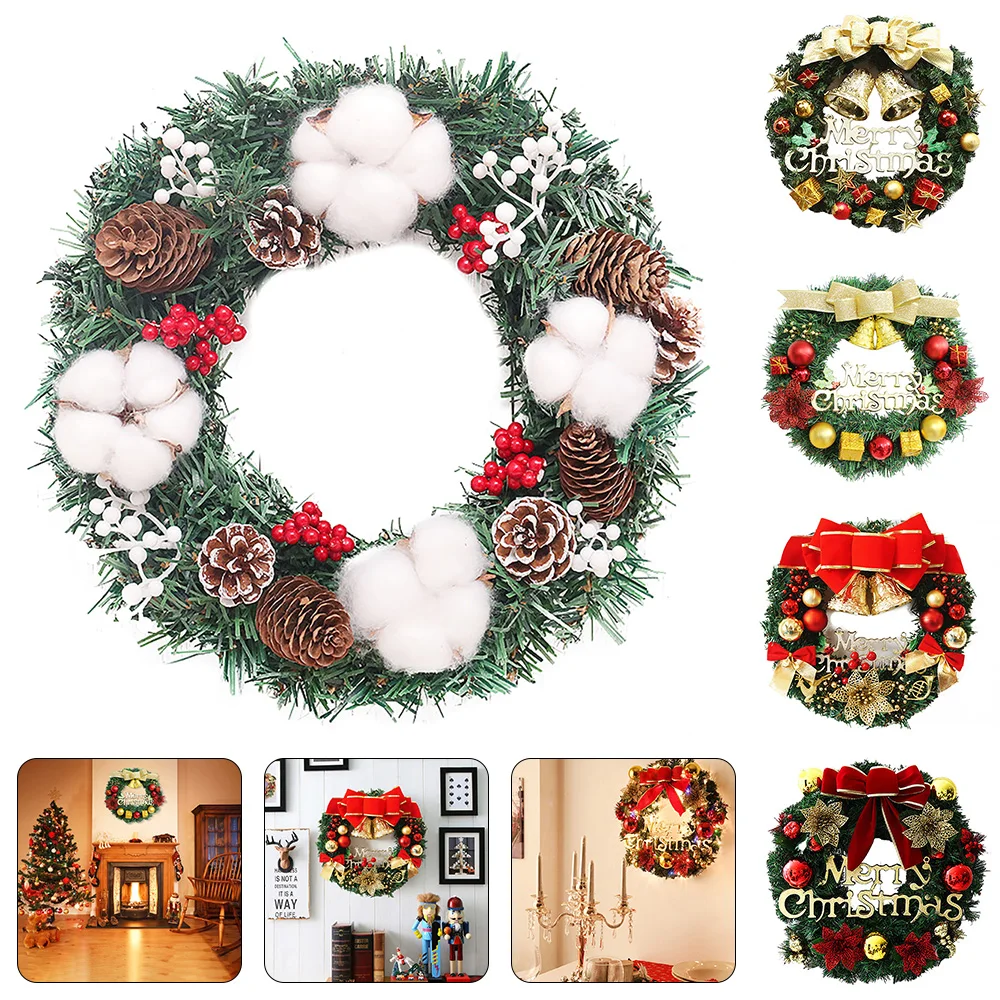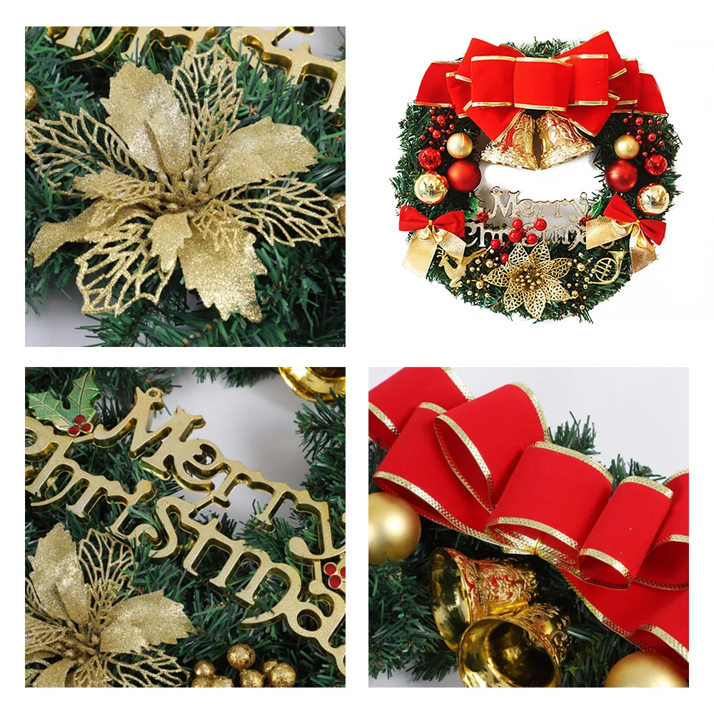 Рождественский венок с бантом для дома, украшение для вечерние, подвесной ротанговый Венок с цветами, 30 см