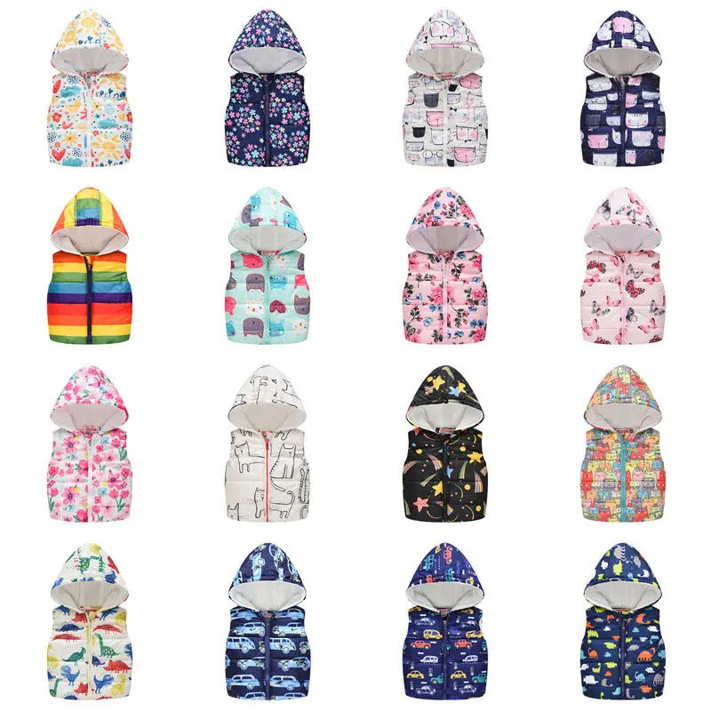 Толстовка без рукавов, куртка, зимняя детская одежда с мультяшным принтом для малышей, жилет для девочек, весенние и осенние детские безрукавки для мальчиков
