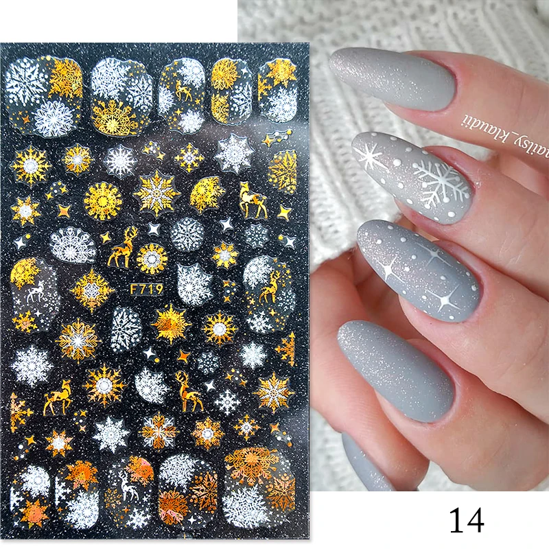 1 шт. 3D рождественские наклейки для ногтей золотые Белые снежинки наклейки для ногтей украшение для ногтей наклейки для ногтей Новогодний подарок