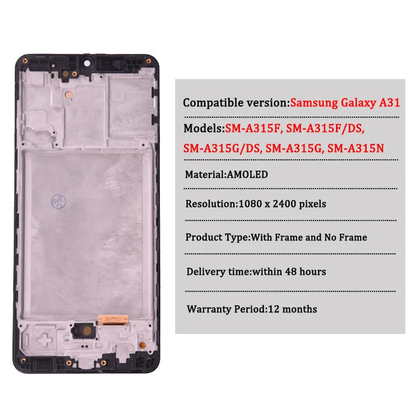 6,4 ''Super AMOLED дисплей для SAMSUNG GALAXY A31 A315 LCD с сенсорным экраном дигитайзер в сборе для Samsung SM-A315F A315G